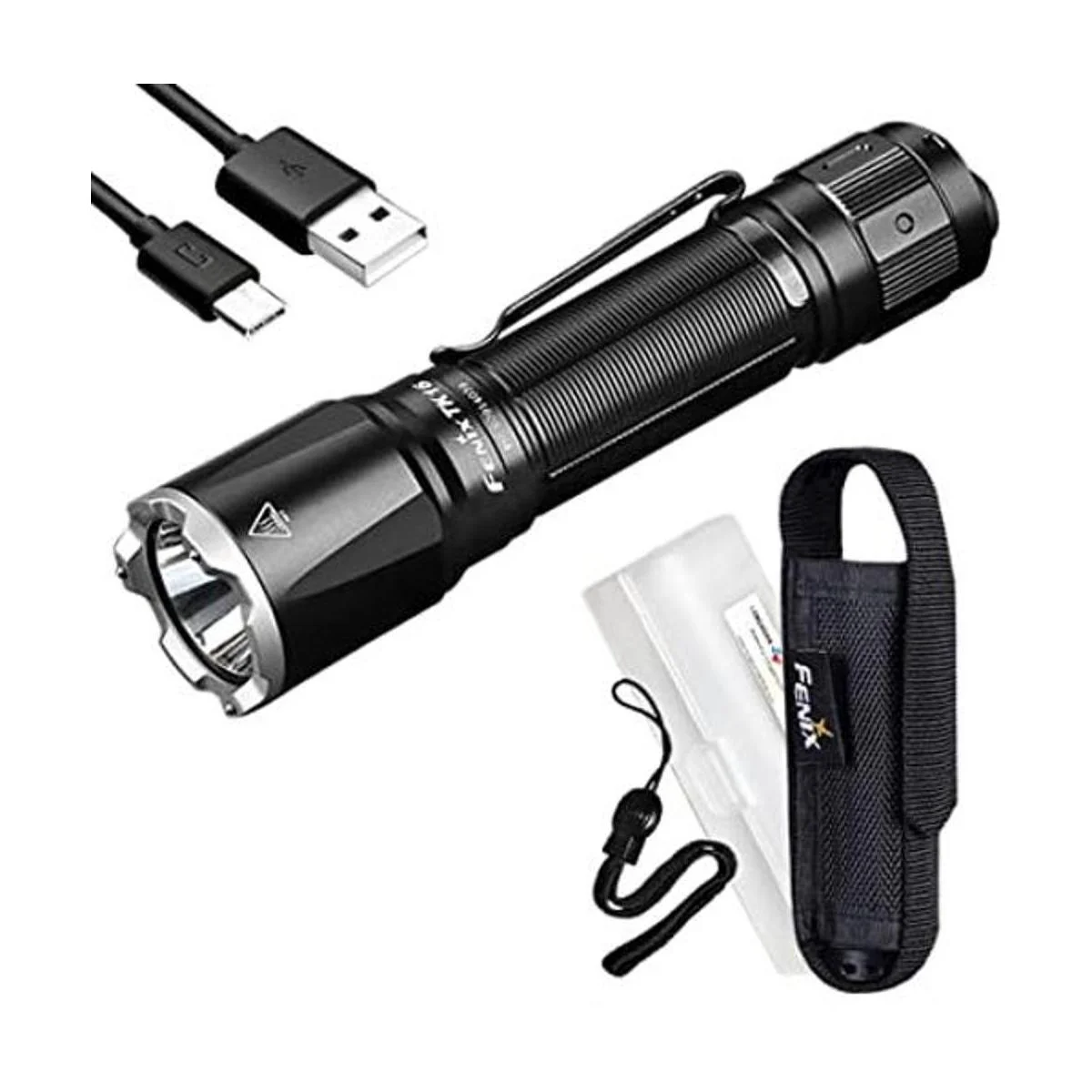 Contenido del paquete: linterna Fenix TK16 V2.0, ARBL215000U preinstalado, cable de carga USBC, funda, cordón, organizador LumenTac