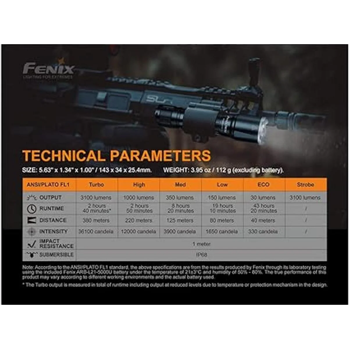 Fenix TK16 v2.0 Linterna táctica, 3100 lúmenes, lanzamiento largo, USBC recargable, con organizador LumenTac