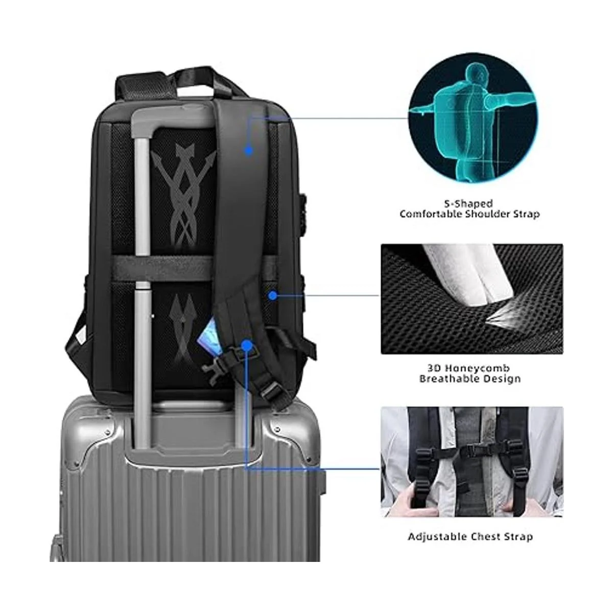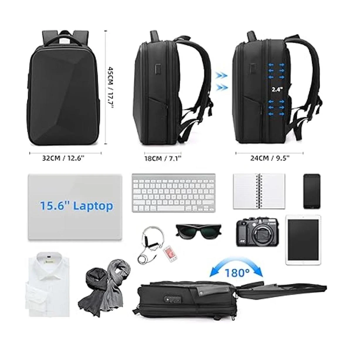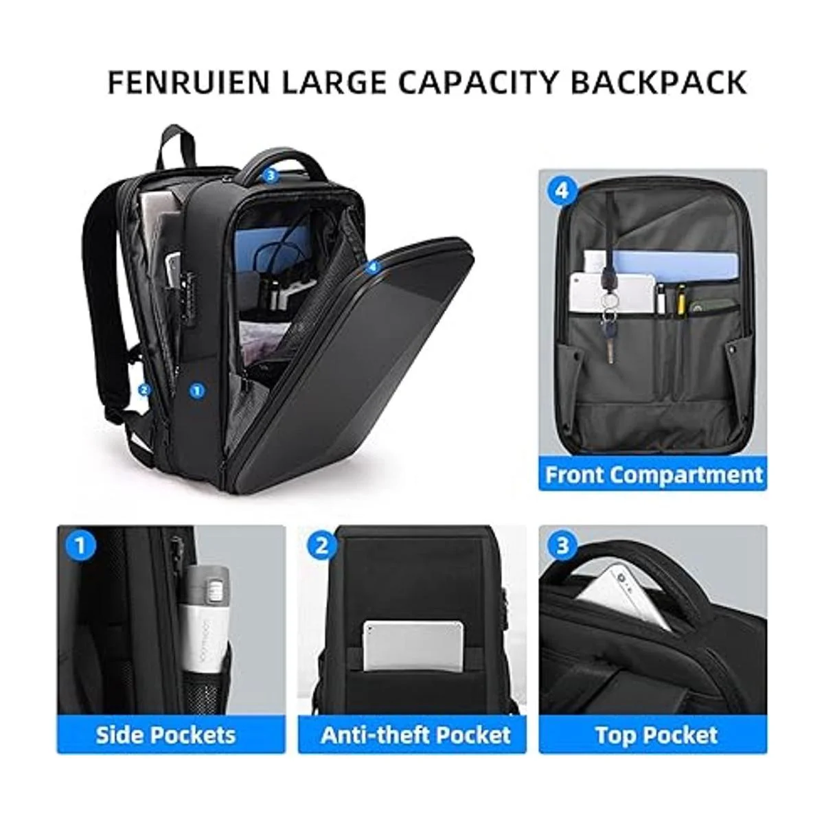 FENRUIEN Mochila antirrobo para computadora portátil para hombres, mochila expandible impermeable con puerto USB, bolsa negra de viaje de negocios de 15.6 pulgadas