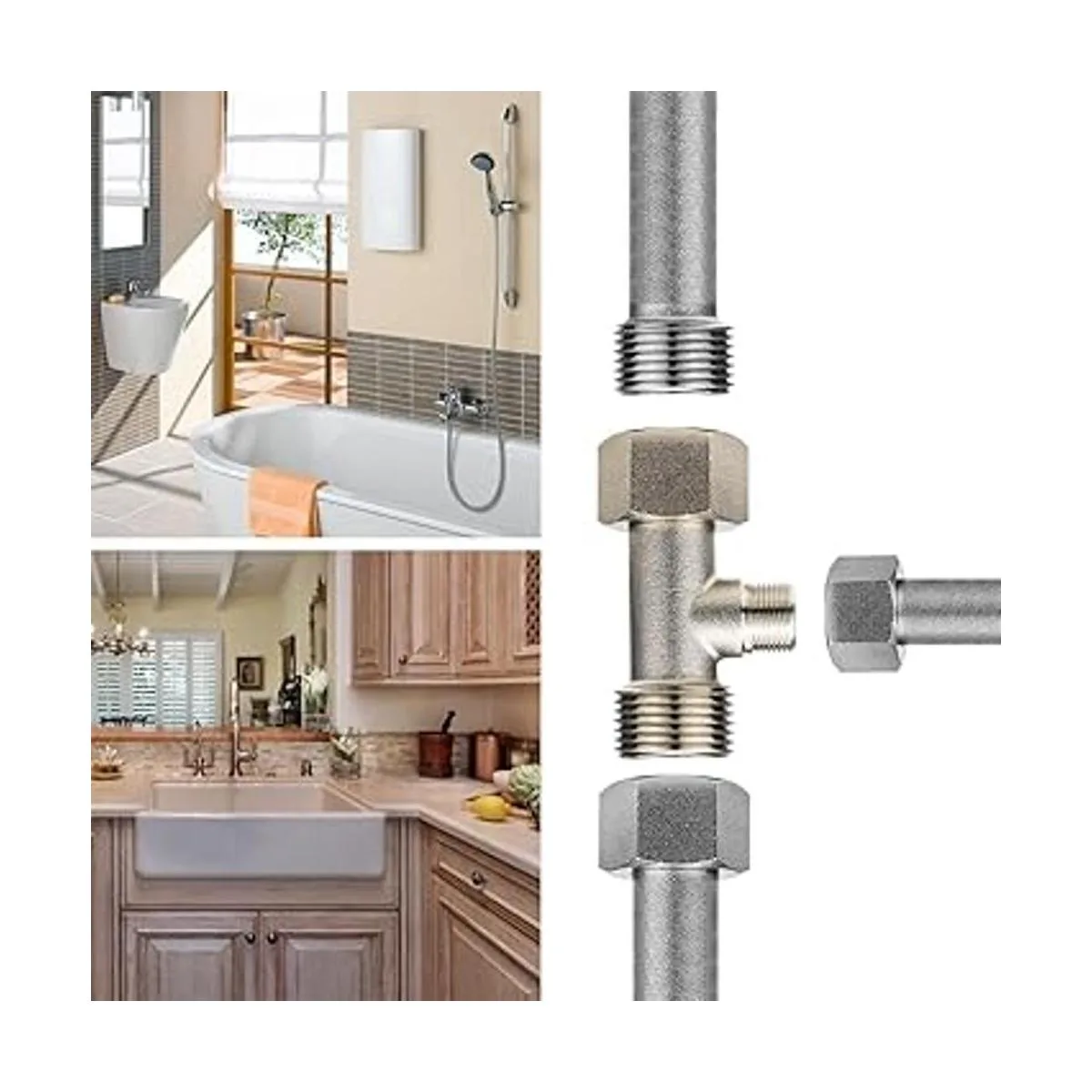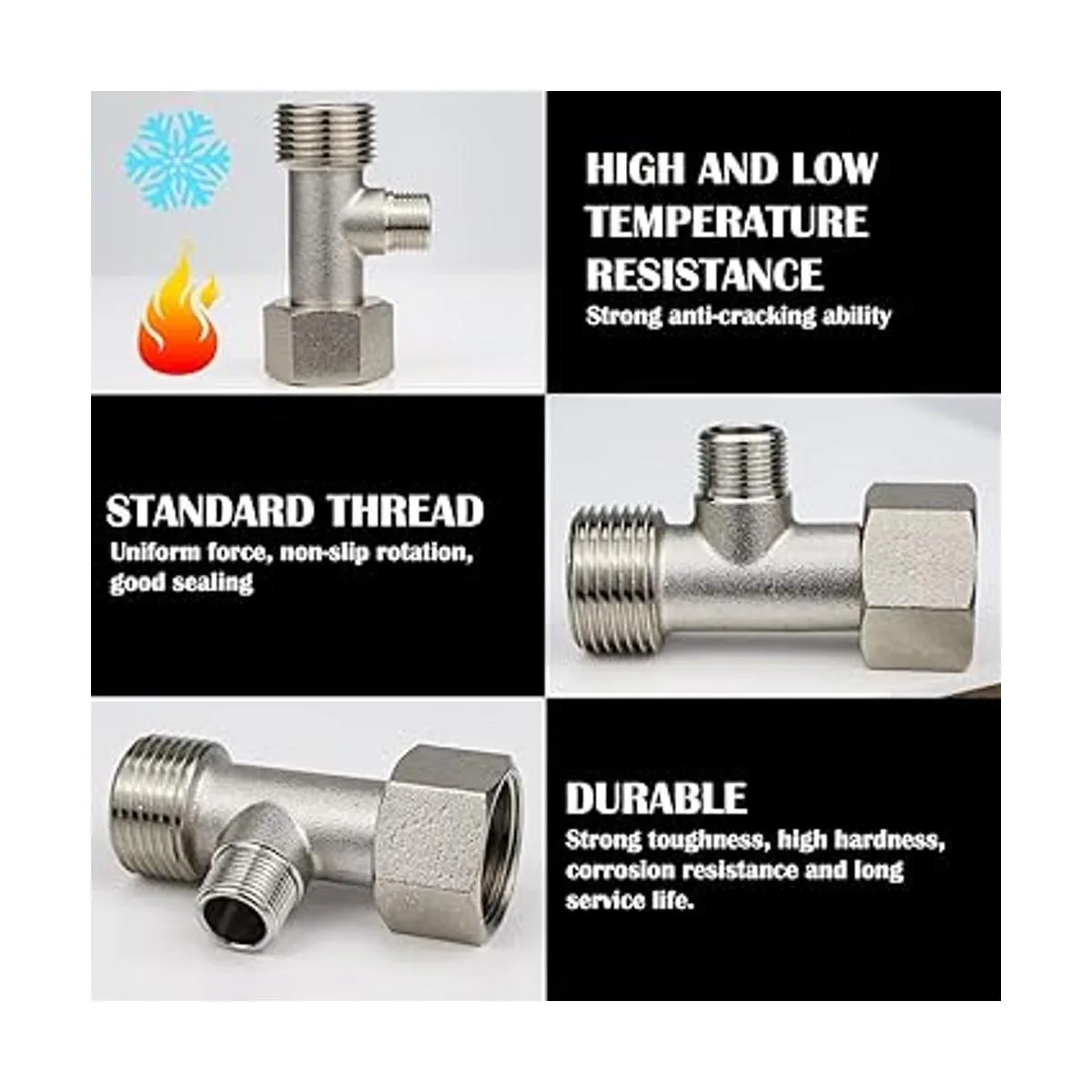 Antialta presión y antiestallidos: el adaptador en T no está hecho de plástico, por lo que puede evitar roturas durante el uso, y tuerca de seguridad móvil opcional para una fácil instalación.