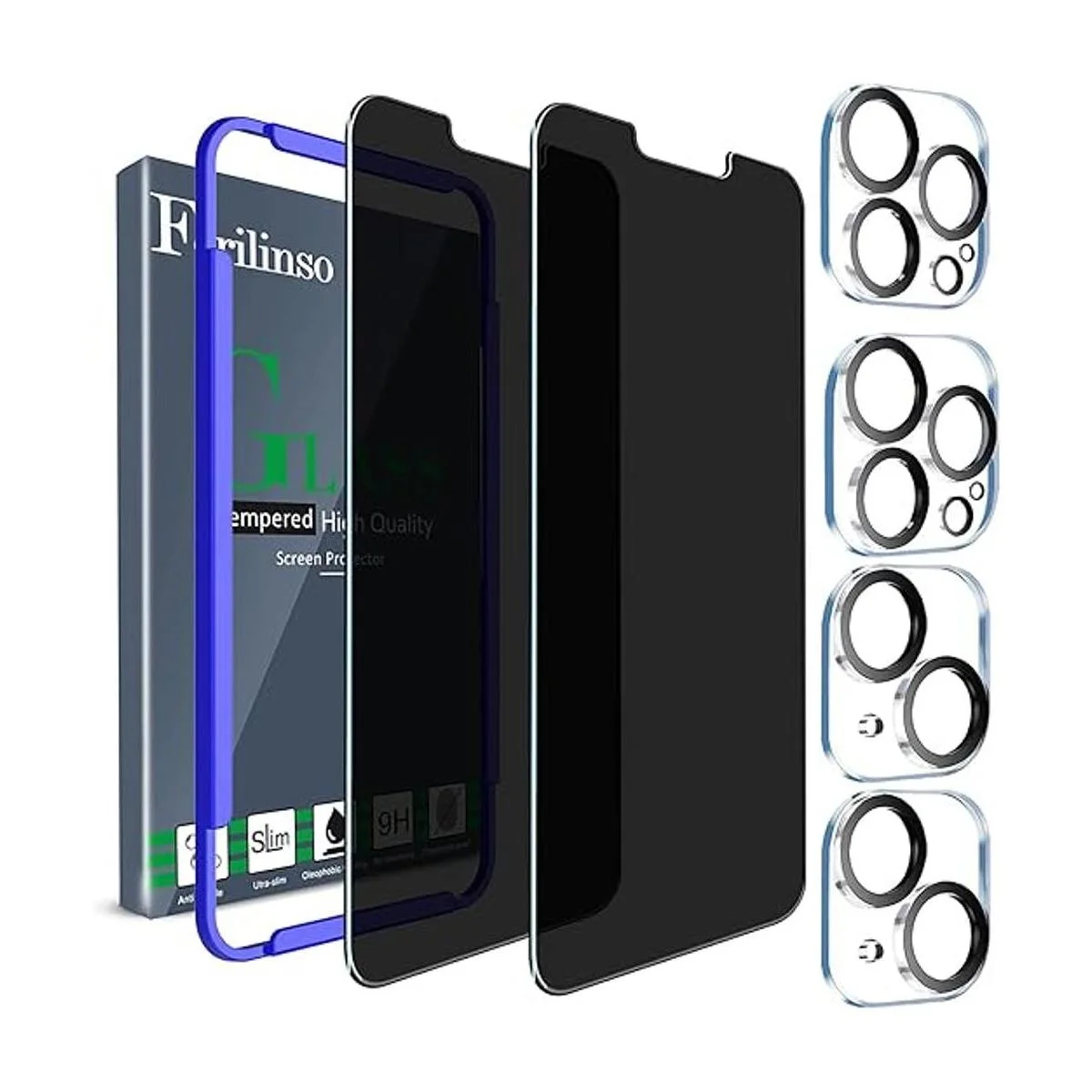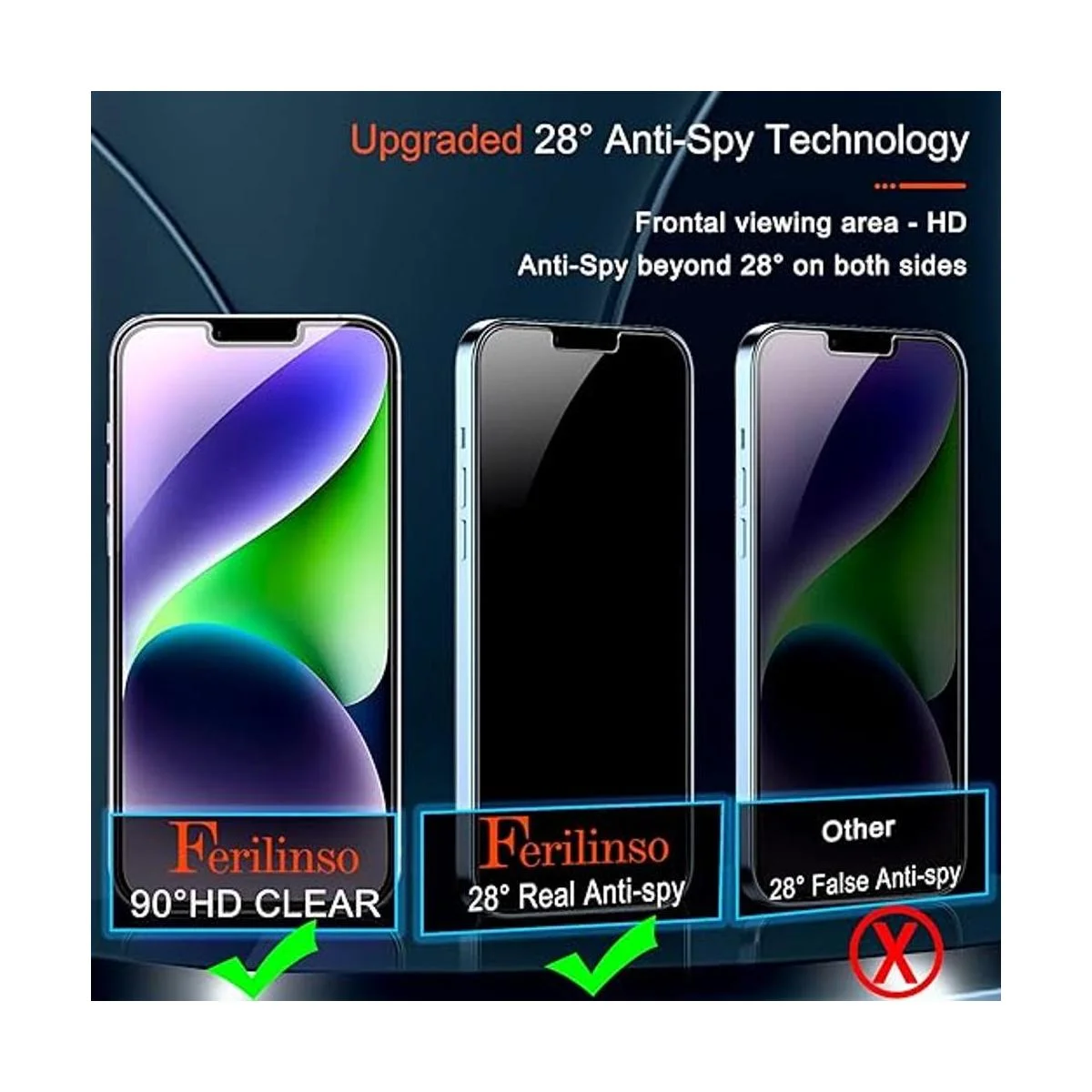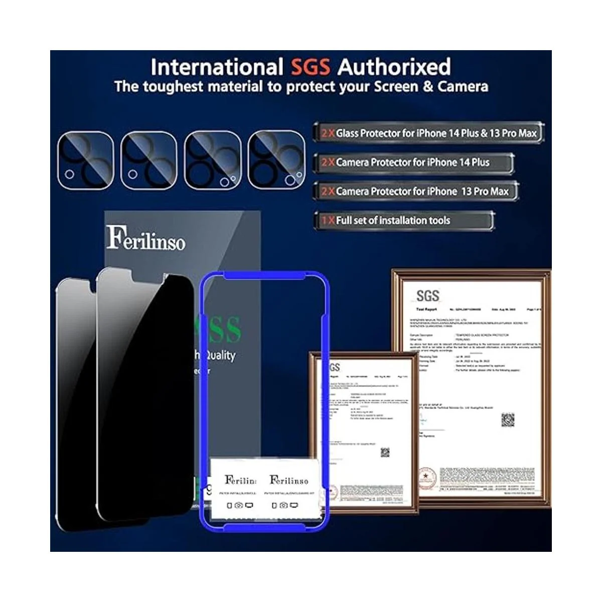Ferilinso Compatible con iPhone 14 Plus iPhone 13 Pro Max, protector de pantalla de privacidad 9H, paquete de 2 protectores de lente de cámara, accesorios sin burbujas compatibles con iPhone 14 Plus iPhone 13 Pro Max, paquete de 2 unidades