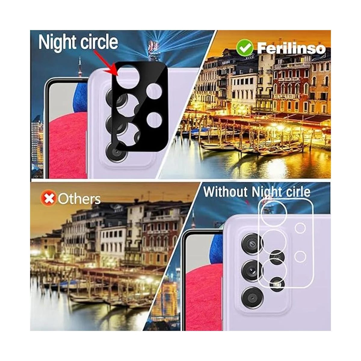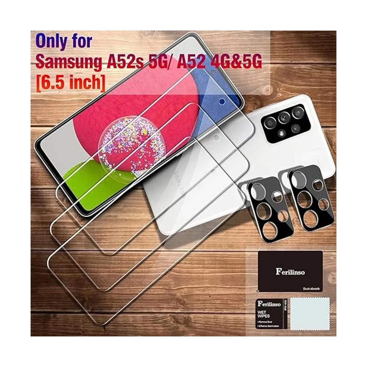 Ferilinso Paquete de 5 protectores de pantalla 2 protectores de lente de cámara para Samsung Galaxy A52 4G5G A52s 5G HD vidrio templado compatible con fundas Antihuellas Fácil instalación