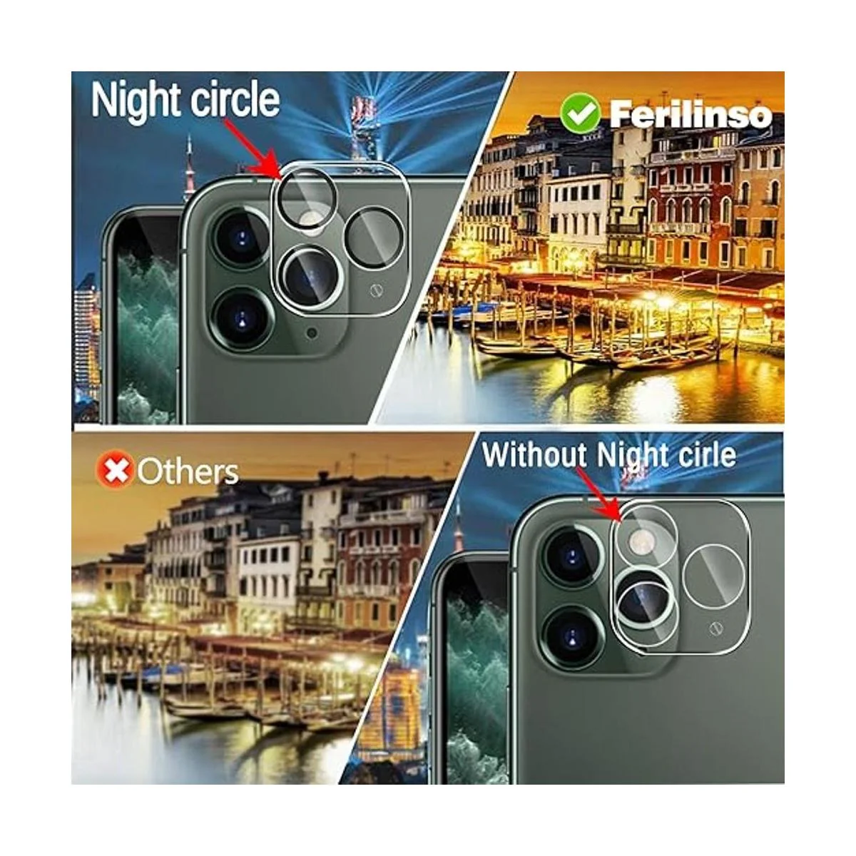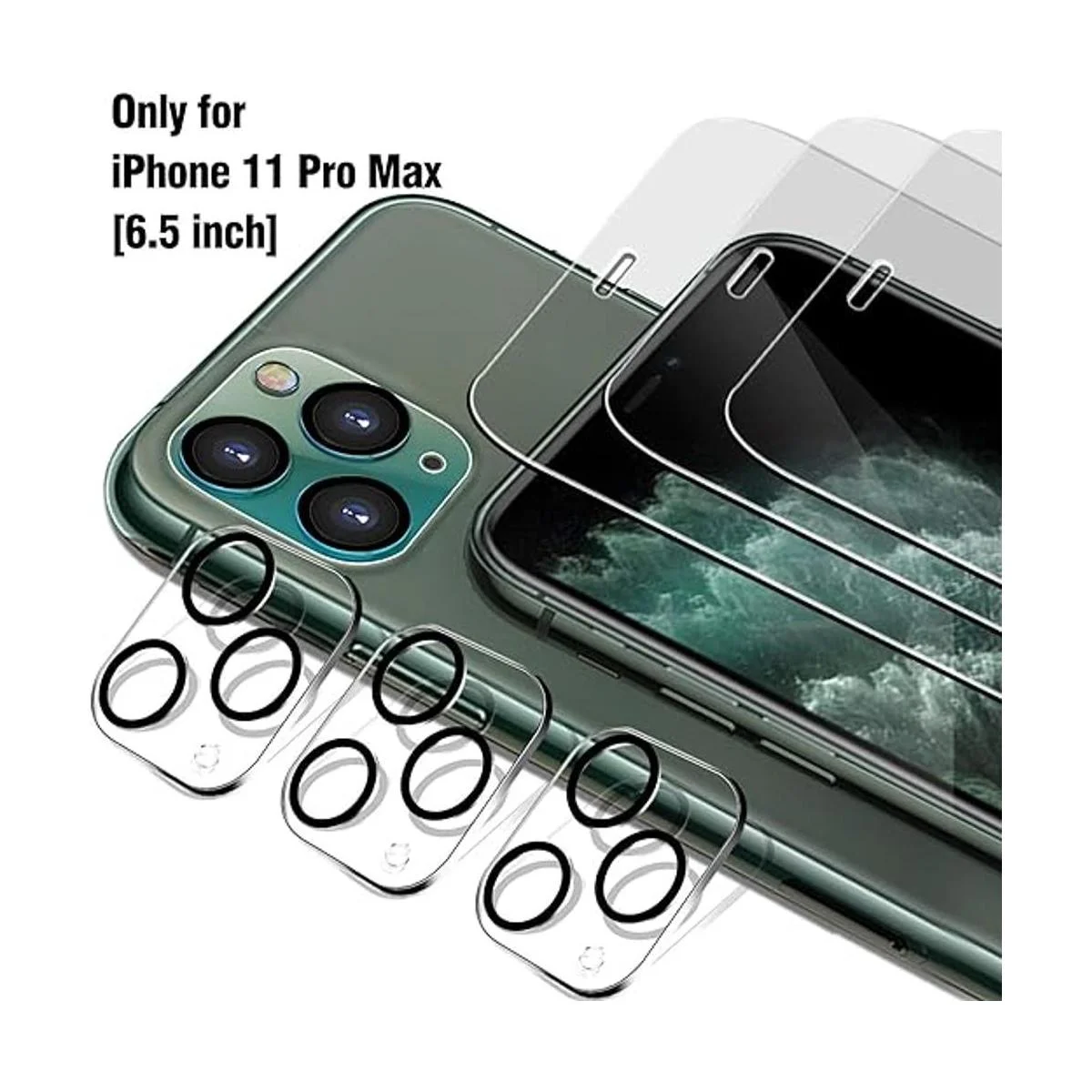 Ferilinso Paquete de 6 protectores de pantalla de vidrio templado paquete de 3 protectores de lente de cámara para iPhone 11 Pro Max 6.5 pulgadas, protector de pantalla de vidrio HD Clarity 9H