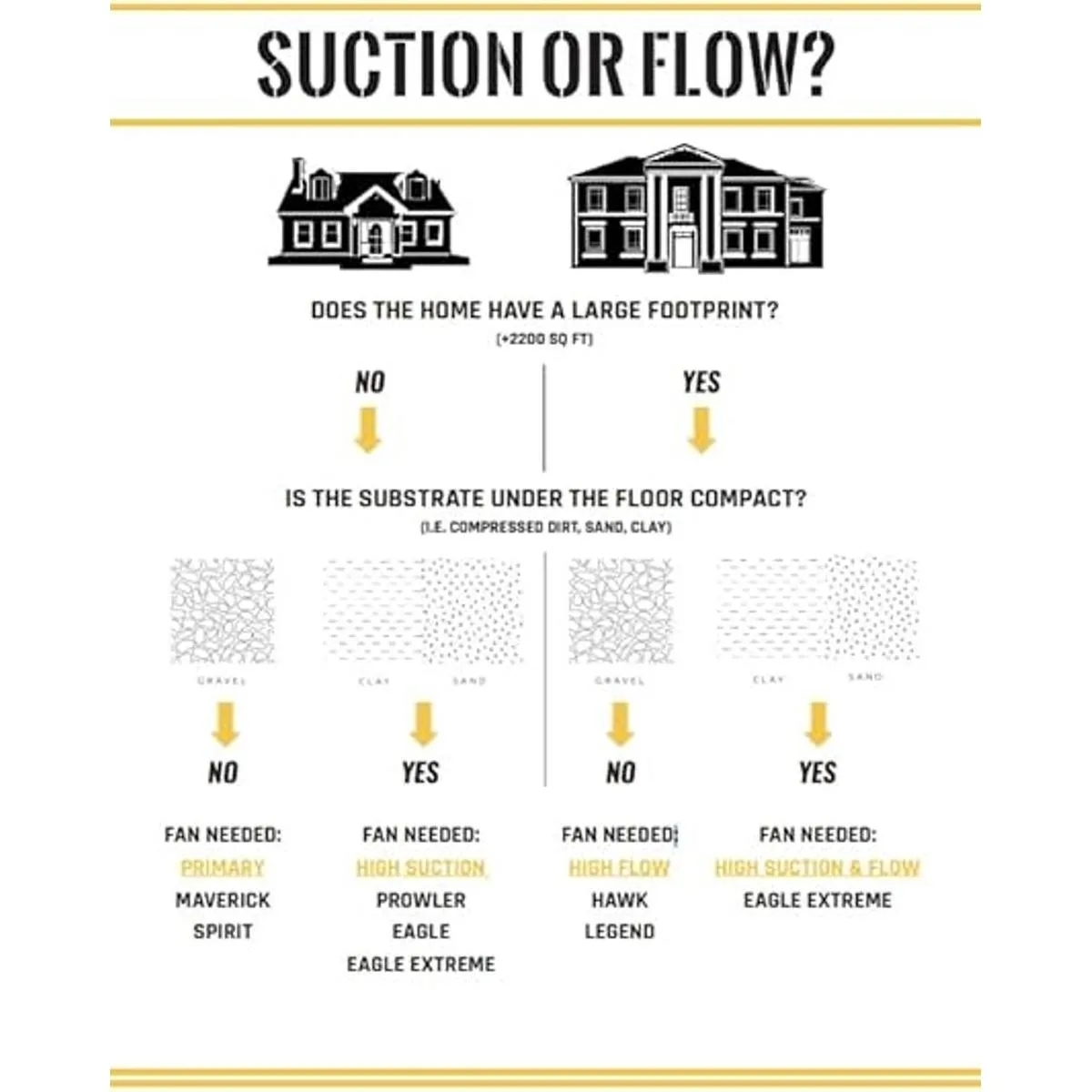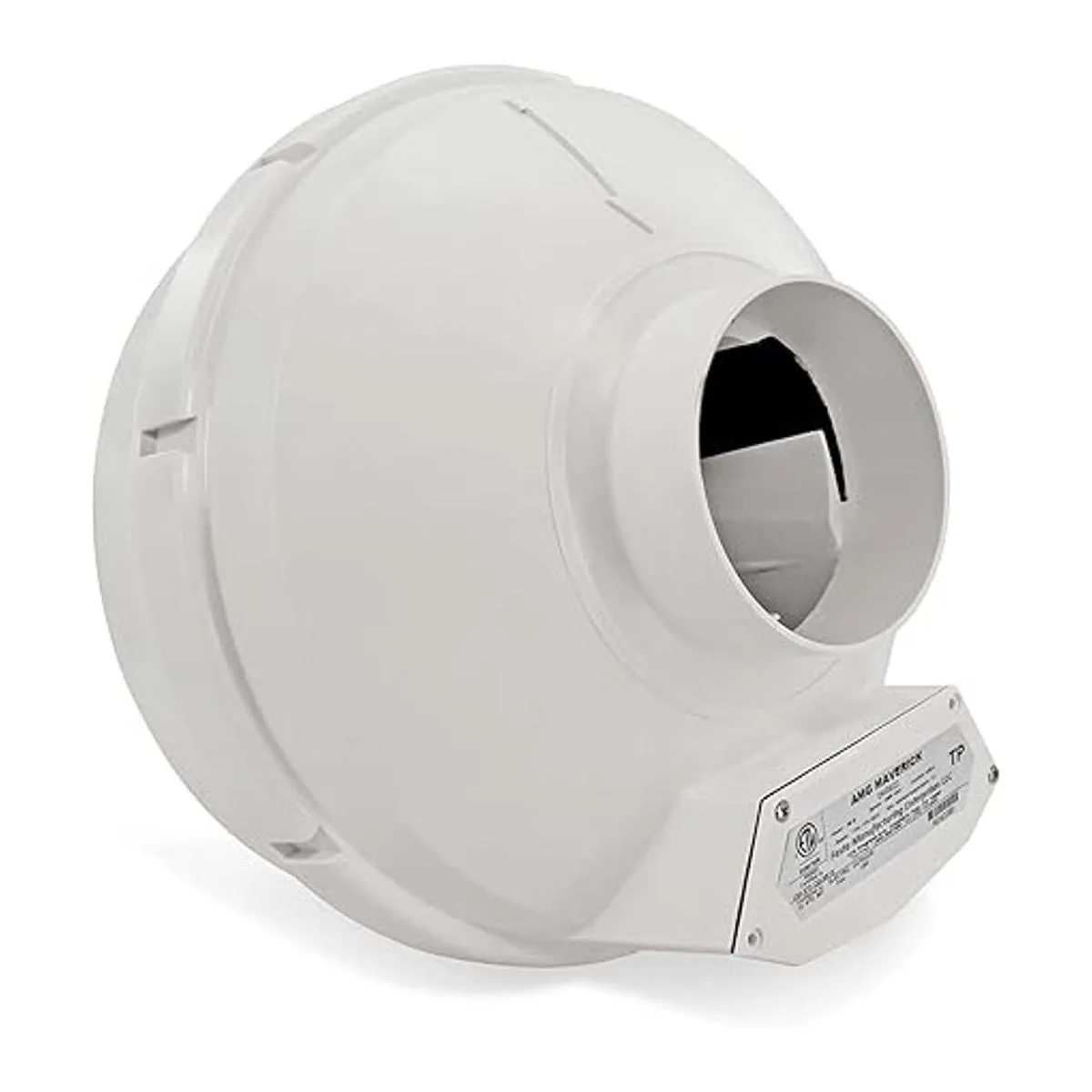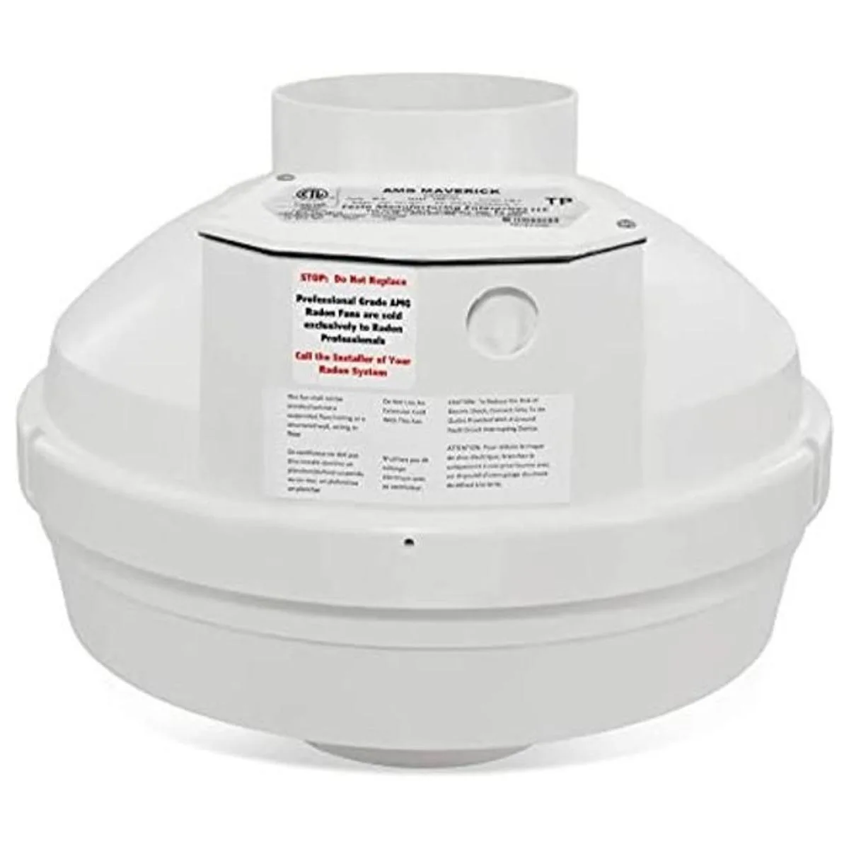 Festa Radon AMG Maverick Ventilador de radón silencioso y de bajo consumo de 260 CFM, ventilador en línea con sistema de mitigación de radón, ventilador eléctrico impermeable de 4 pulgadas, fabricado con poliéster reforzado de vidrio resistente, color blanco