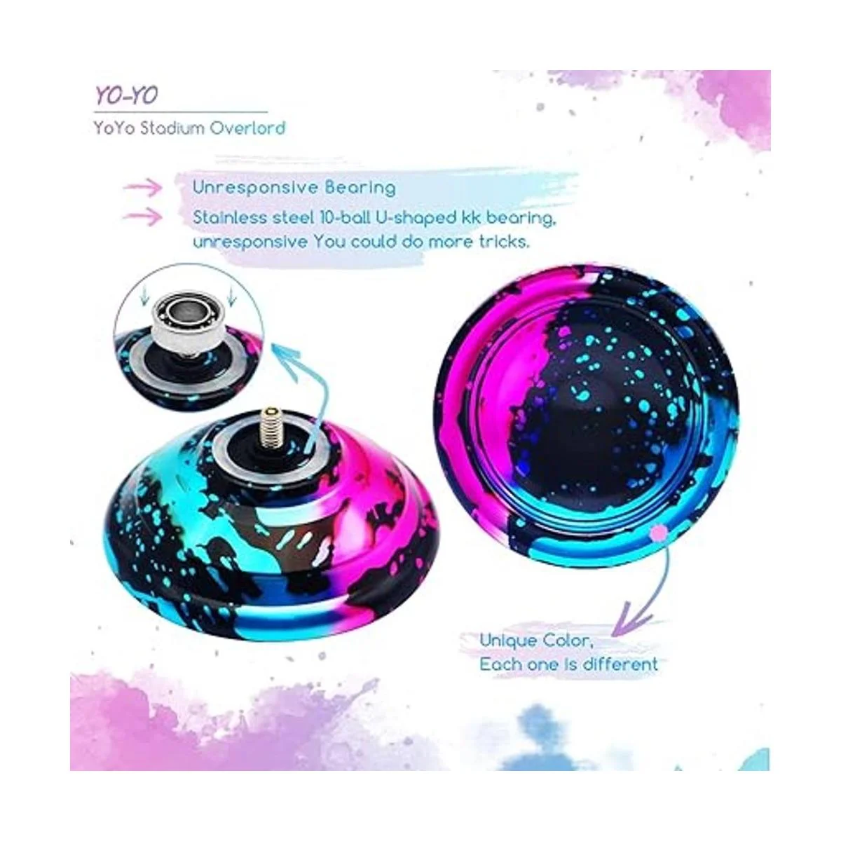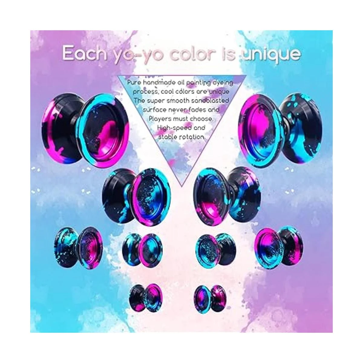Rendimiento premium: bola de yoyo de aluminio 6061 de calidad con rodamiento de acero inoxidable en forma de U de 10 bolas que garantiza rutinas de alta velocidad estables y equilibradas. Anticorrosión, estable y firme, el yoyo no reactivo nunca se decolora, no se raya fácilmente, te ayuda a jugar yoyo.