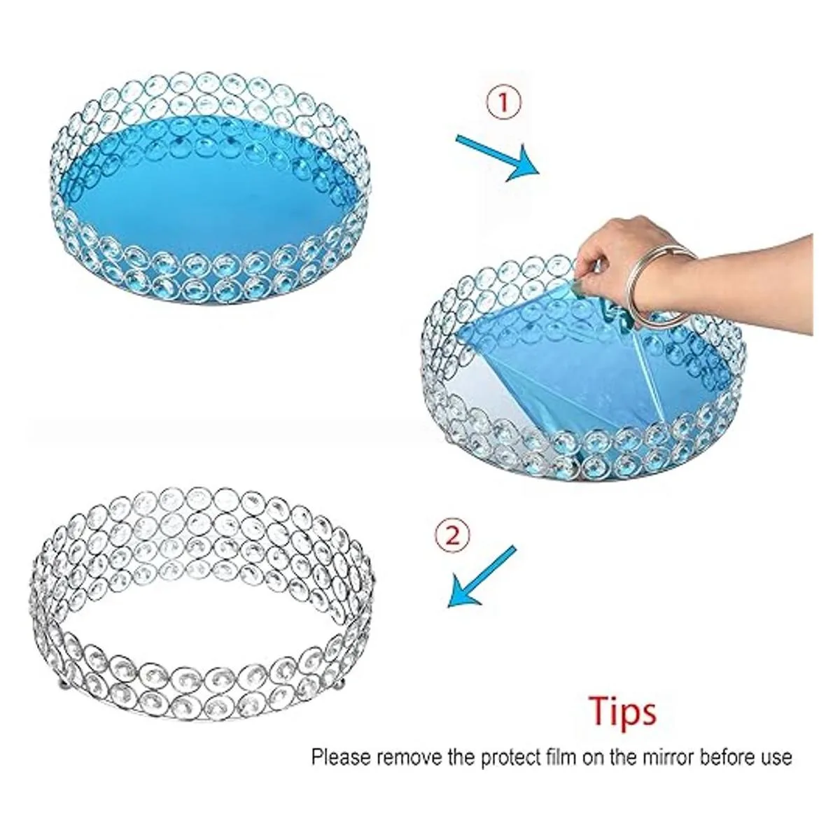 Material de la bandeja de maquillaje de cristal: cuentas de cristal con superficie espejada por favor, retira la película protectora en la superficie del espejo cuando utilices la bandeja