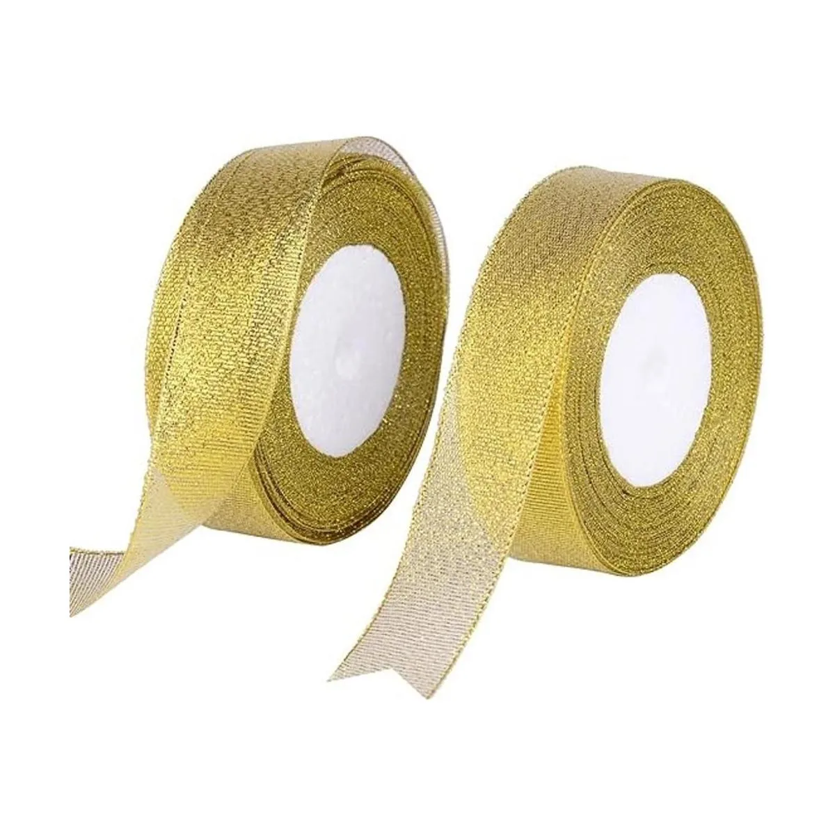 Feyarl Cinta dorada metálica con purpurina de 1.0 in 2 rollos de 82.0 ft
