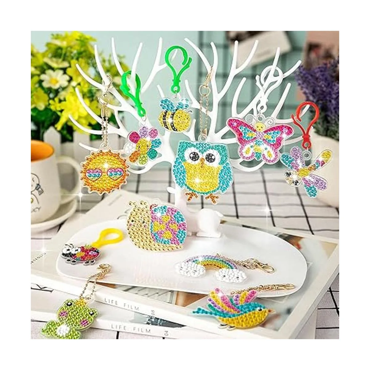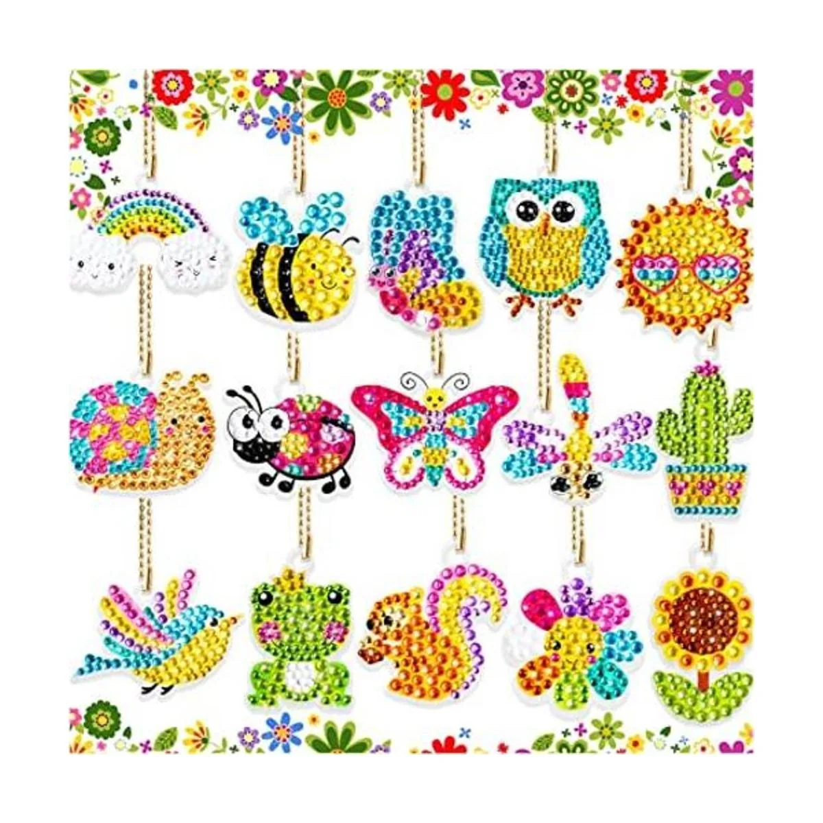 FFNIU Arte de diamantes para niños, paquete de 15 llaveros de pintura de diamantes, gemas de bricolaje, arte y manualidades para niños y niñas de 6 a 8 a 12 años animales de jardín