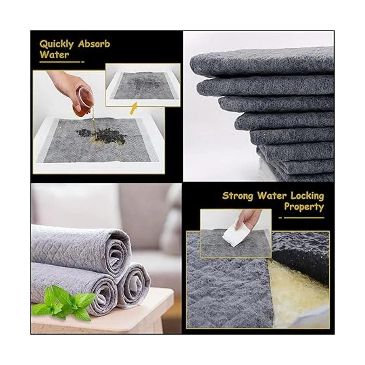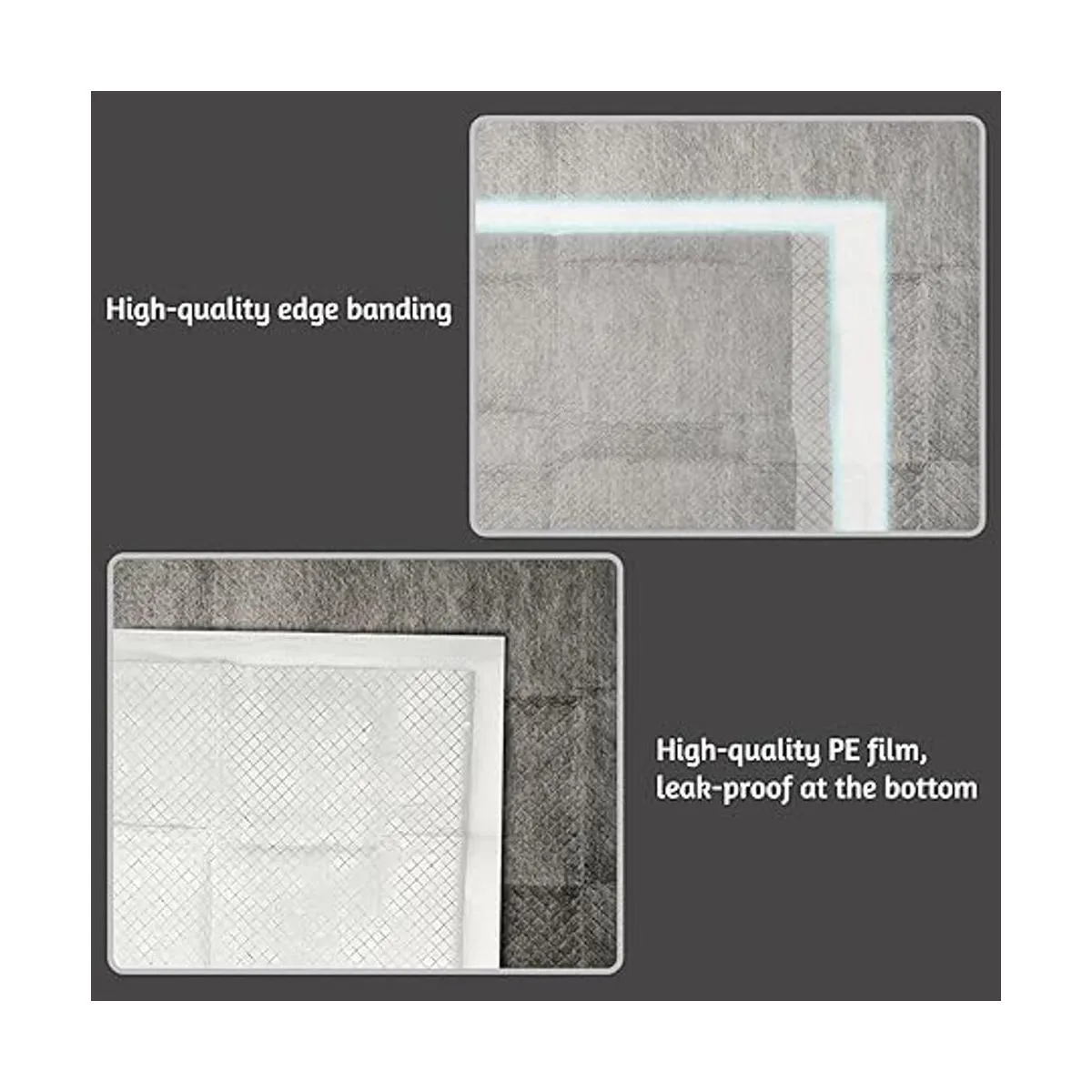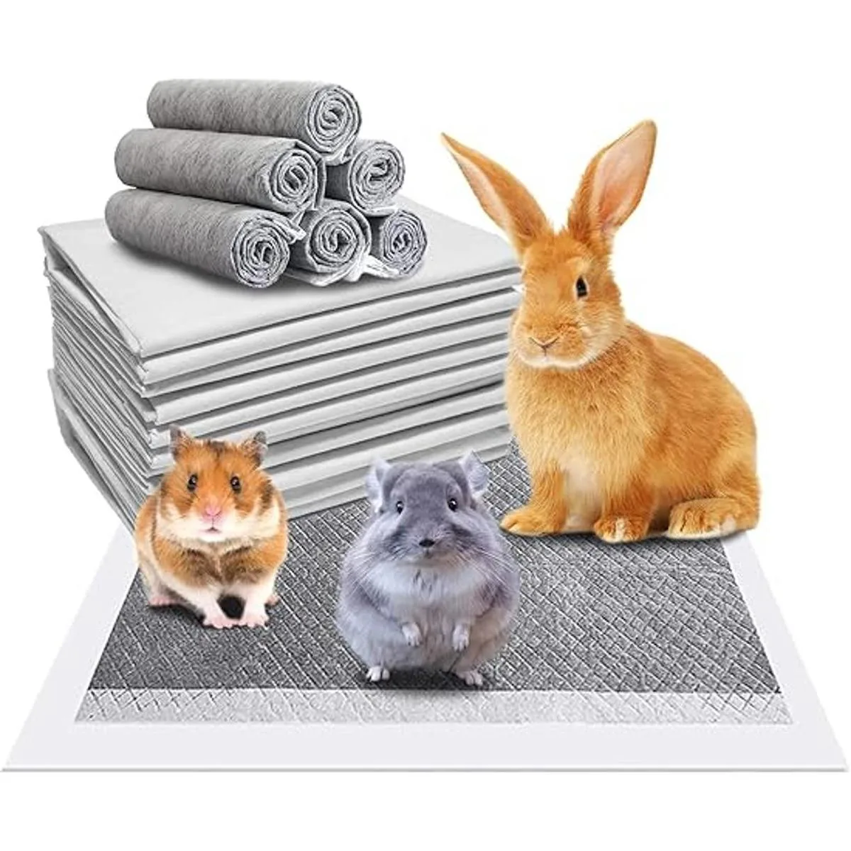 Fhiny 100 almohadillas de orina de conejo, forro de jaula desechable de carbono negro, control de olor, accesorios de entrenamiento de conejo de carbón con superficie de secado rápido para conejos, conejillos de indias, cachorros y animales pequeños