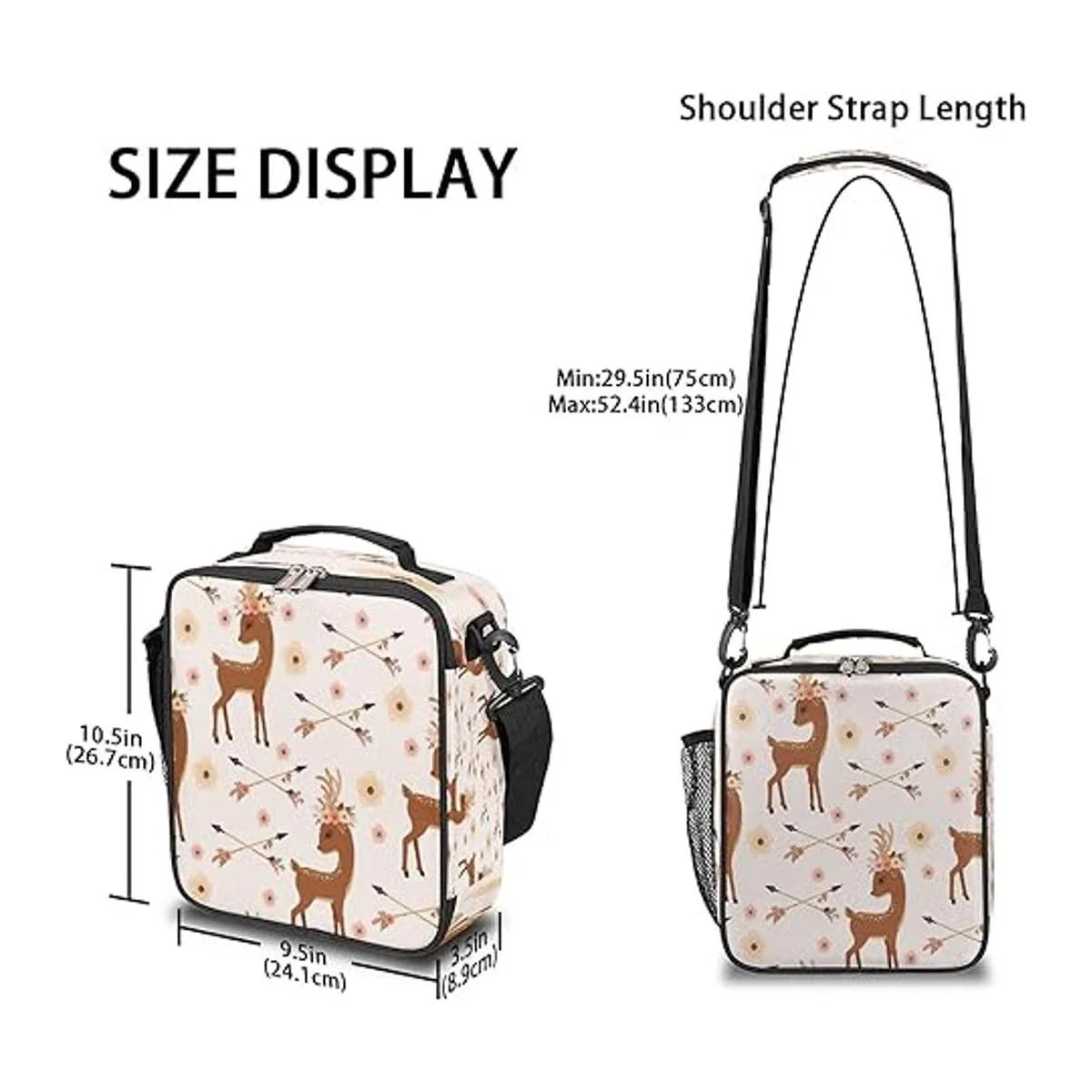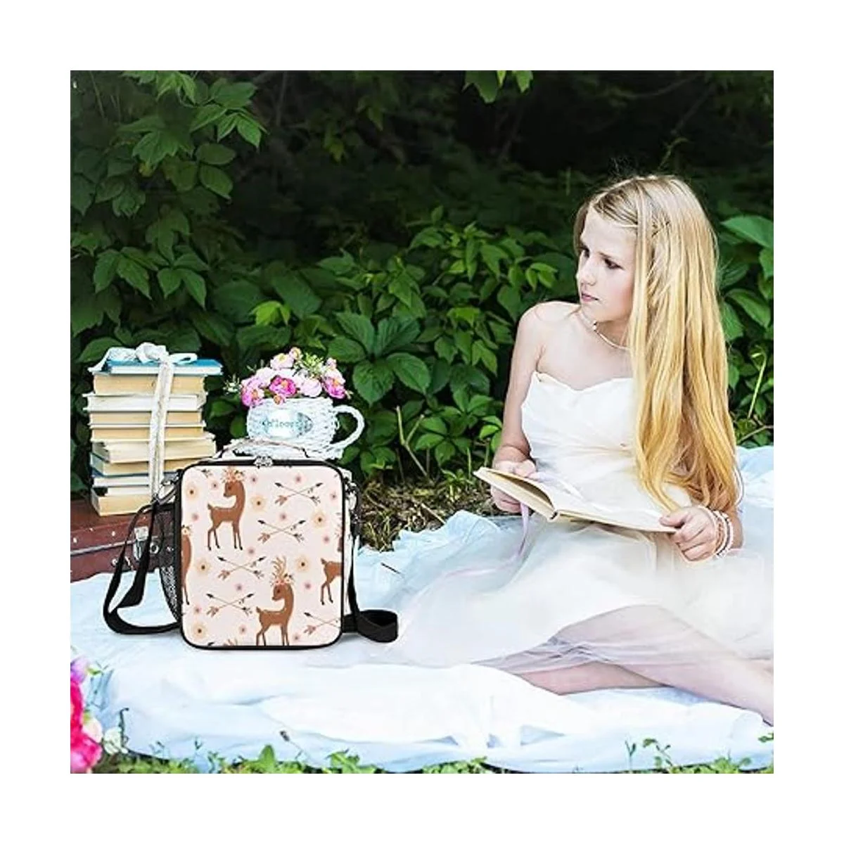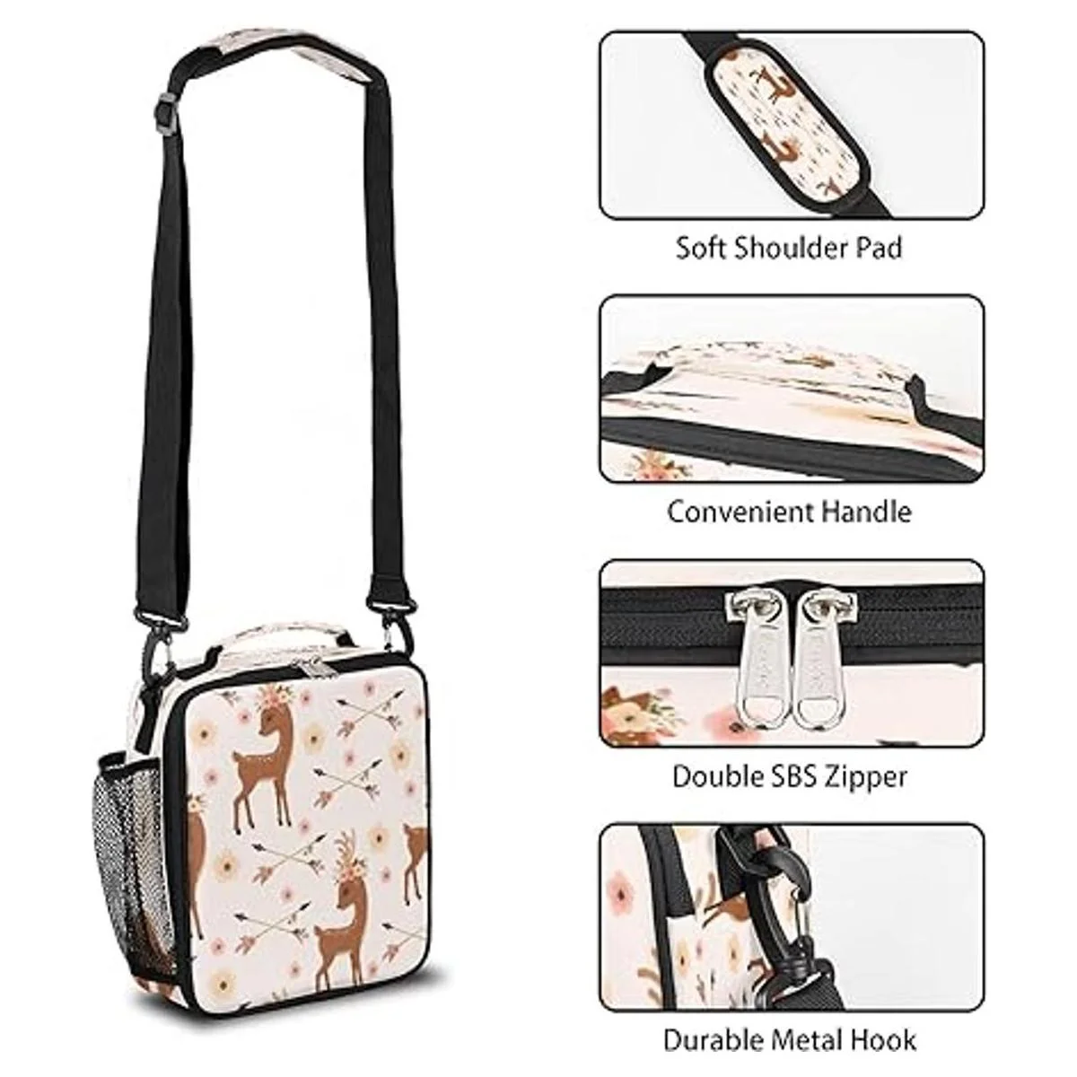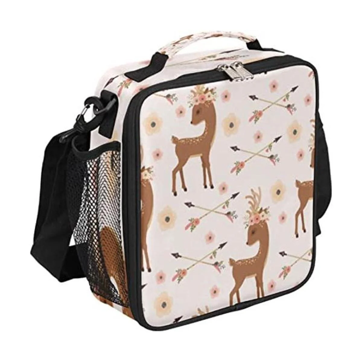 Fiambrera de ciervo animal para niños, bolsa de almuerzo floral para niñas y niños, lonchera congelable aislada con correa de hombro ajustable, bolsa de mano más fresca para la escuela, viajes, picnic, playa