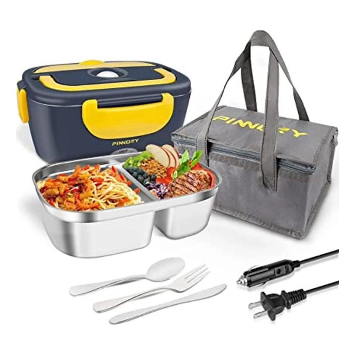 Fiambrera eléctrica, calentador de alimentos de 60 W, lonchera térmica para adultos, lonchera térmica para el trabajo, soporte de 12 V24 V110 V para camióncochetrabajohogar, contenedor de acero inoxidable 304, tenedorcucharacuchillos, 1.5 L