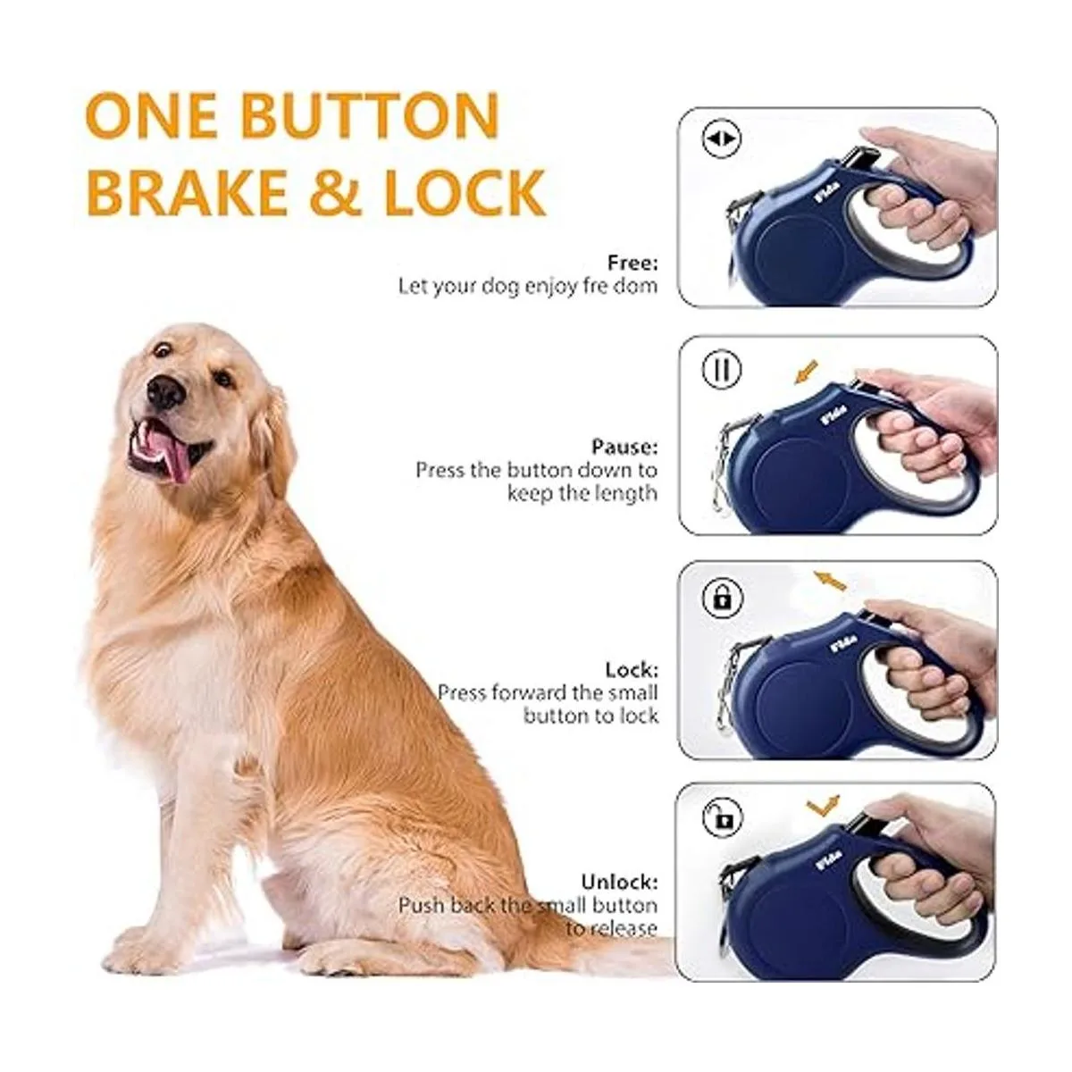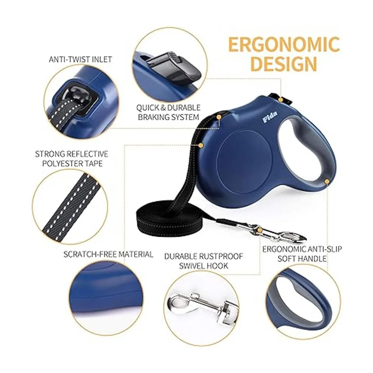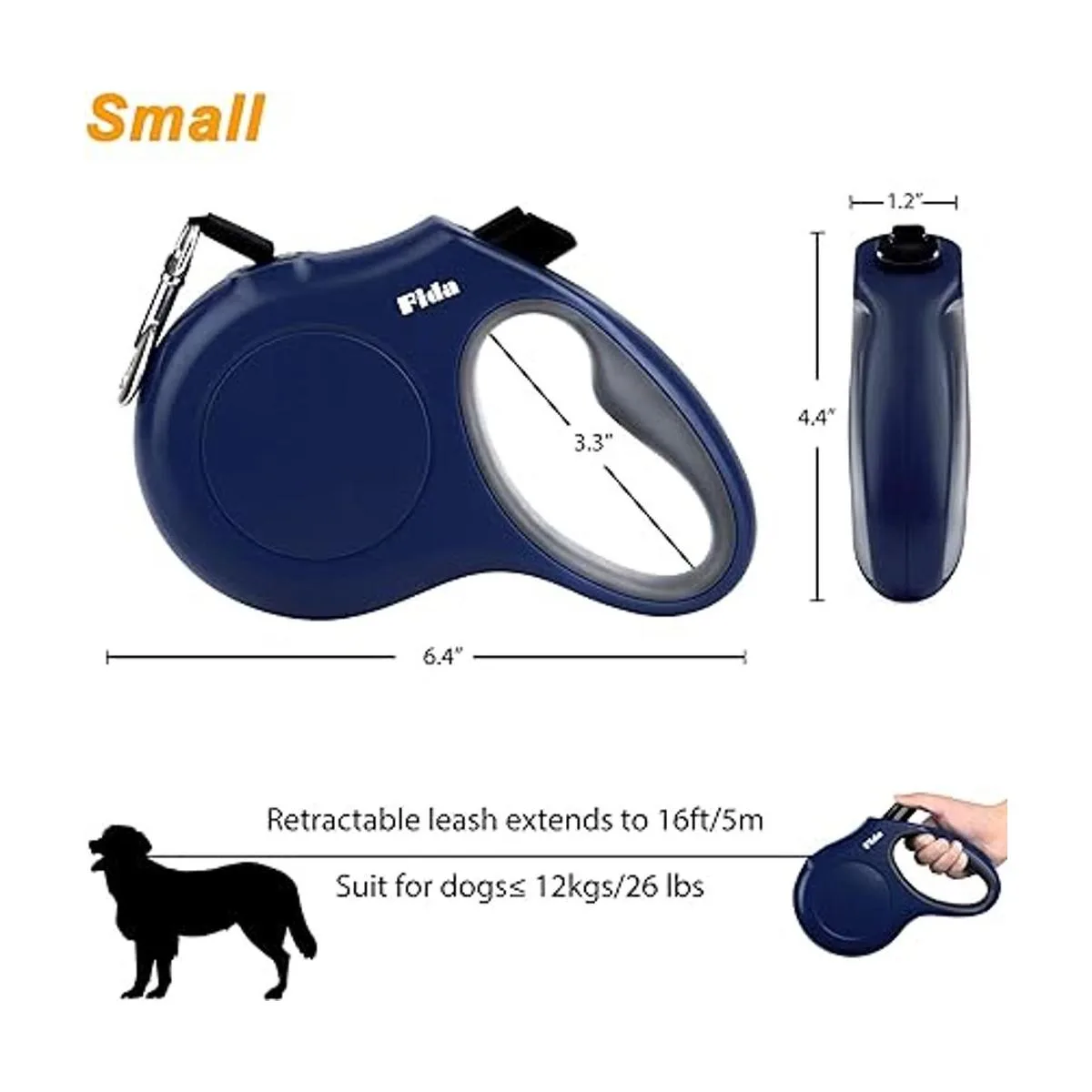 Fida Correa retráctil para perro con dispensador y bolsas para desechos, para razas XSML, 16 pies resistente para mascotas, mango suave, cinta reflectante de nailon fuerte, freno con una sola mano
