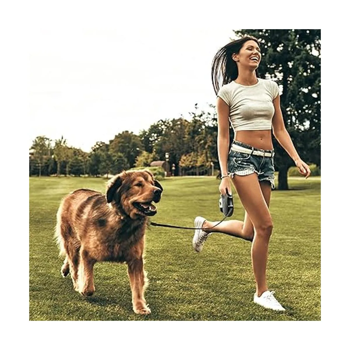 Correa reflectante y sin enredos: la correa negra está incrustada con materiales reflectantes blancos. La correa de cordón altamente reflectante aumenta la seguridad y visibilidad para perros y sus dueños temprano en la mañana o tarde en la noche. El diseño sin enredos de 360 hace que la retracción sea más fácil y sin problemas.