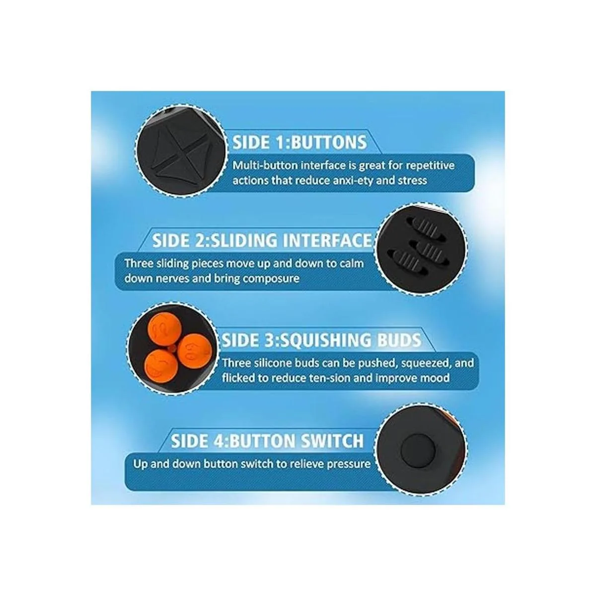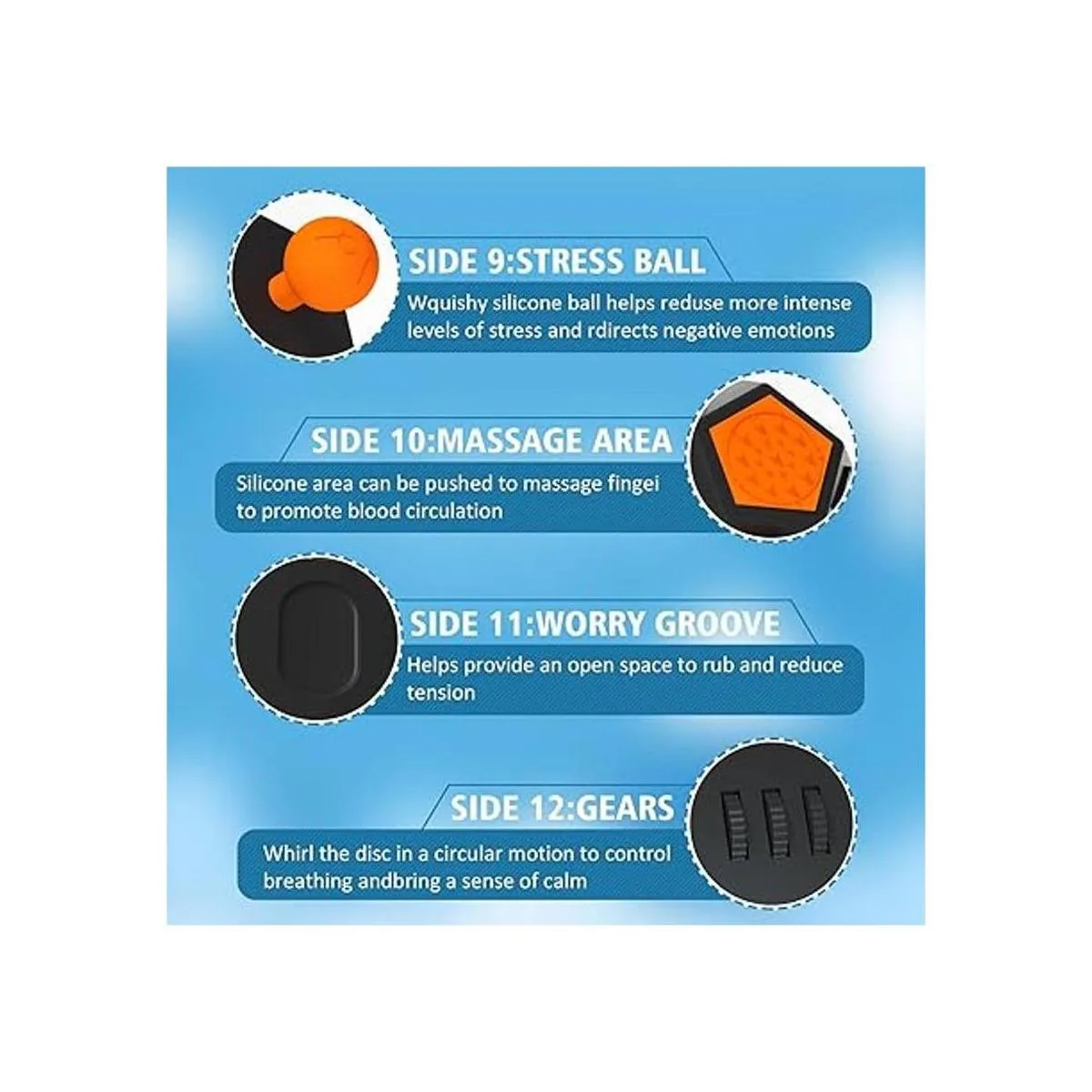 12 lados incluye engranajes, botones, Joystick, switch, alivia y el estrés, bolas, bolas de disco, silicona, Joystick, etc…. su cuerpo de liberación y estado de ánimo y le ayuda a concentrarse en su trabajo o estudio.
