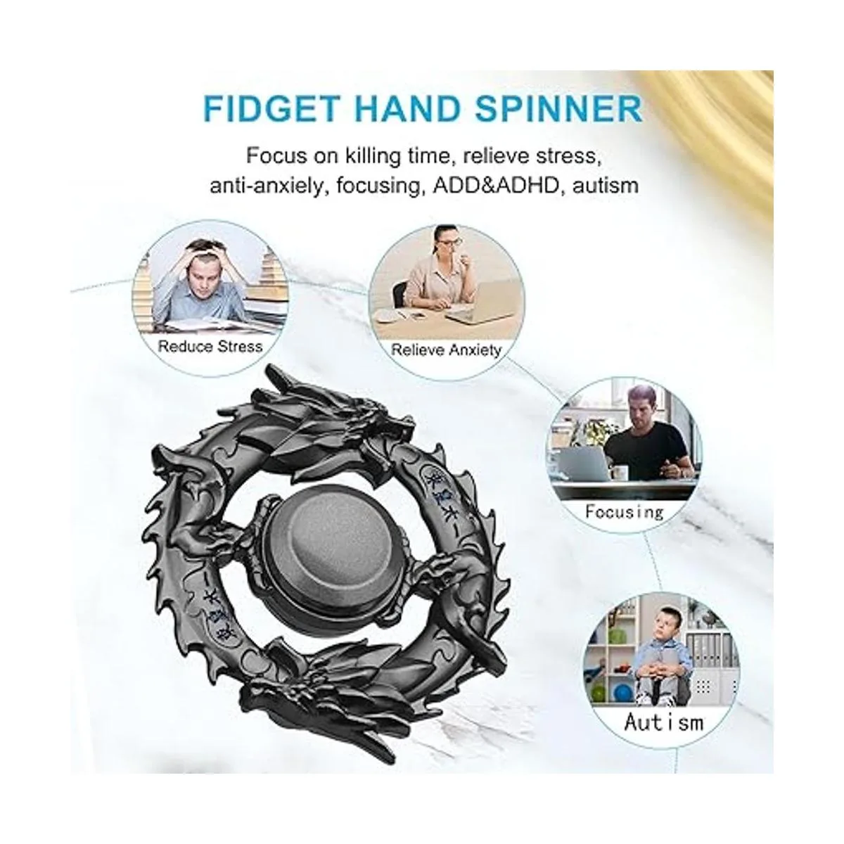 Fidget Spinner Juguete giratorio de mano con diseño de dragón negro, juguete giratorio de metal para la punta de los dedos, giroscopio para aliviar el estrés y la ansiedad, TDAH, juguete EDC, el mejor regalo de fiesta