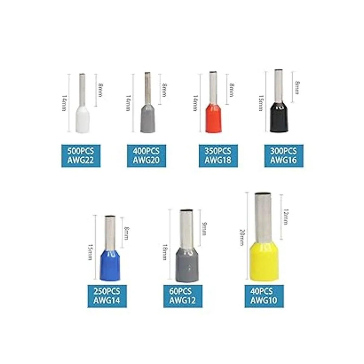 Fidioto Kit de terminales de virolas de alambre de 1900 piezas, AWG 2210, terminales de cable aislados, terminales de pasador para electricidad, industrial, sistema de control de energía, etc.