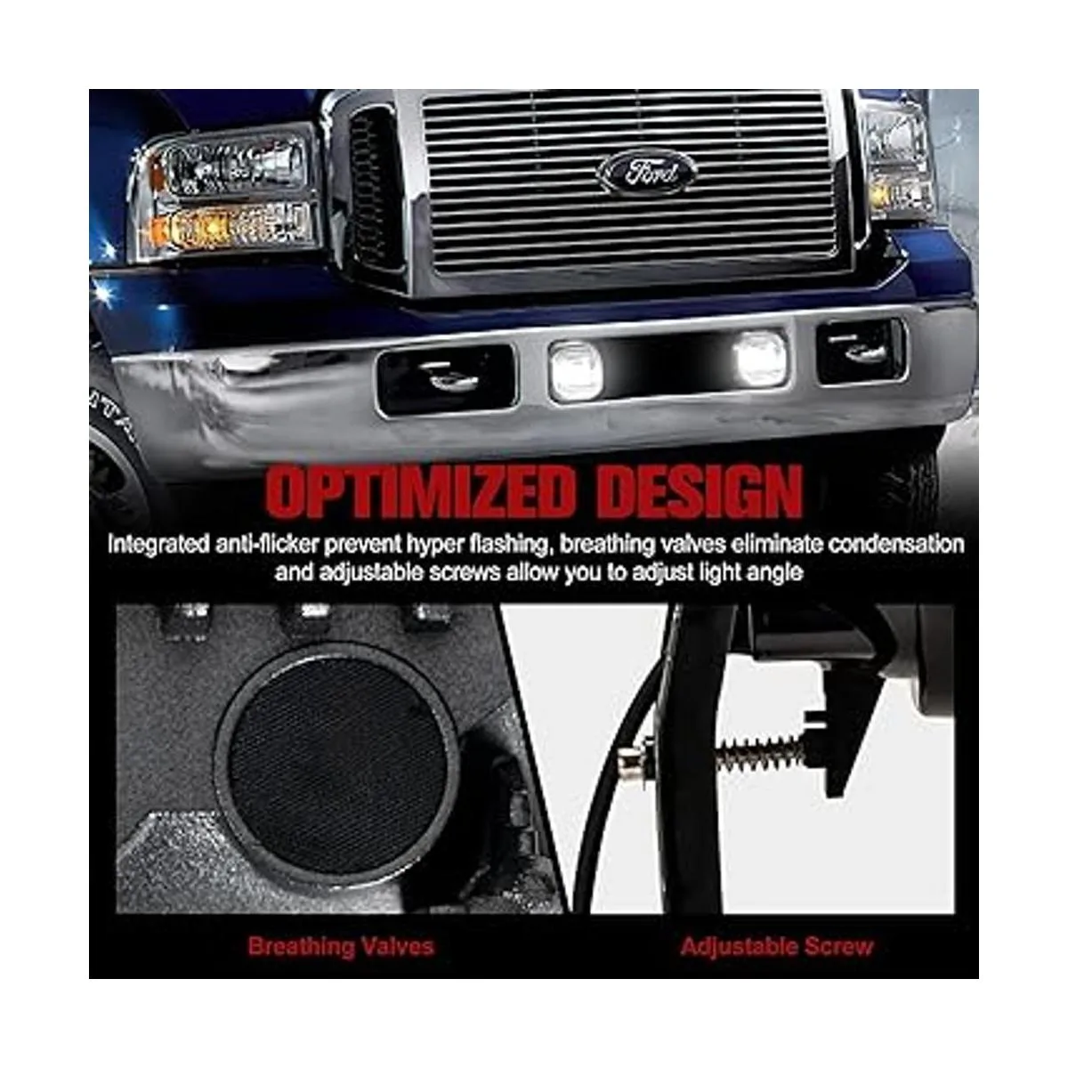 Compatible con Ford F250/F350 20052007, estas luces antiniebla LED son 100 Plug Play las extensiones de arnés se han adjunto, que cambiarán directamente en lugar de las unidades originales que están diseñadas para reemplazar.