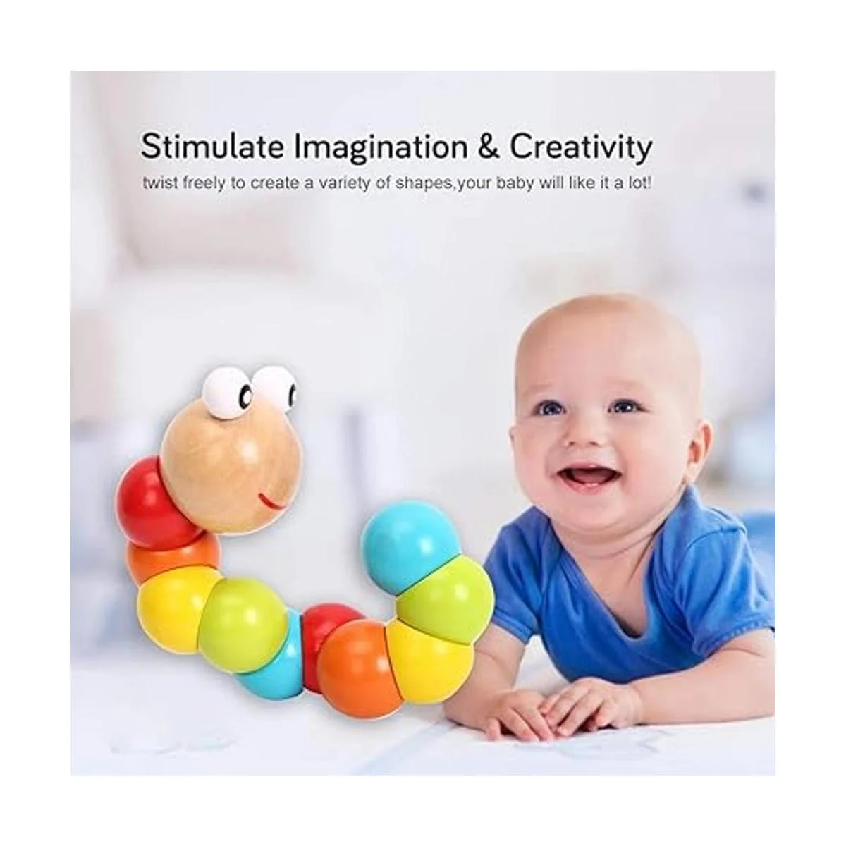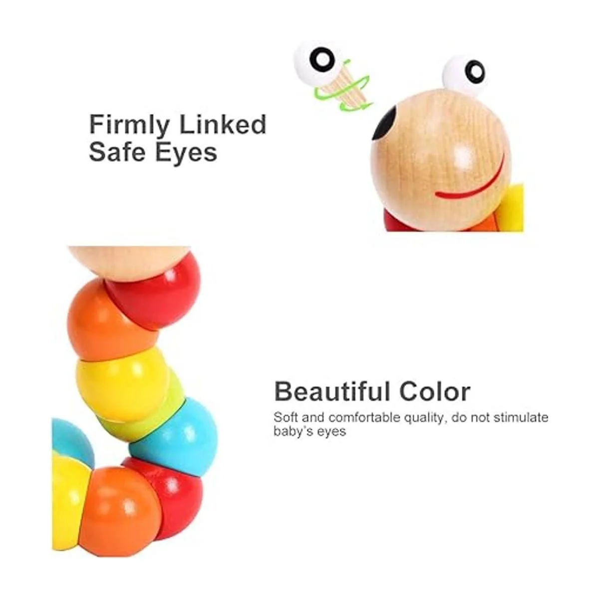 Activar la creatividad: las piezas de madera en forma de abanico científicamente se pueden girar a voluntad para estimular la imaginación y la creatividad del bebé, hacer diferentes formas de bonitas orugas