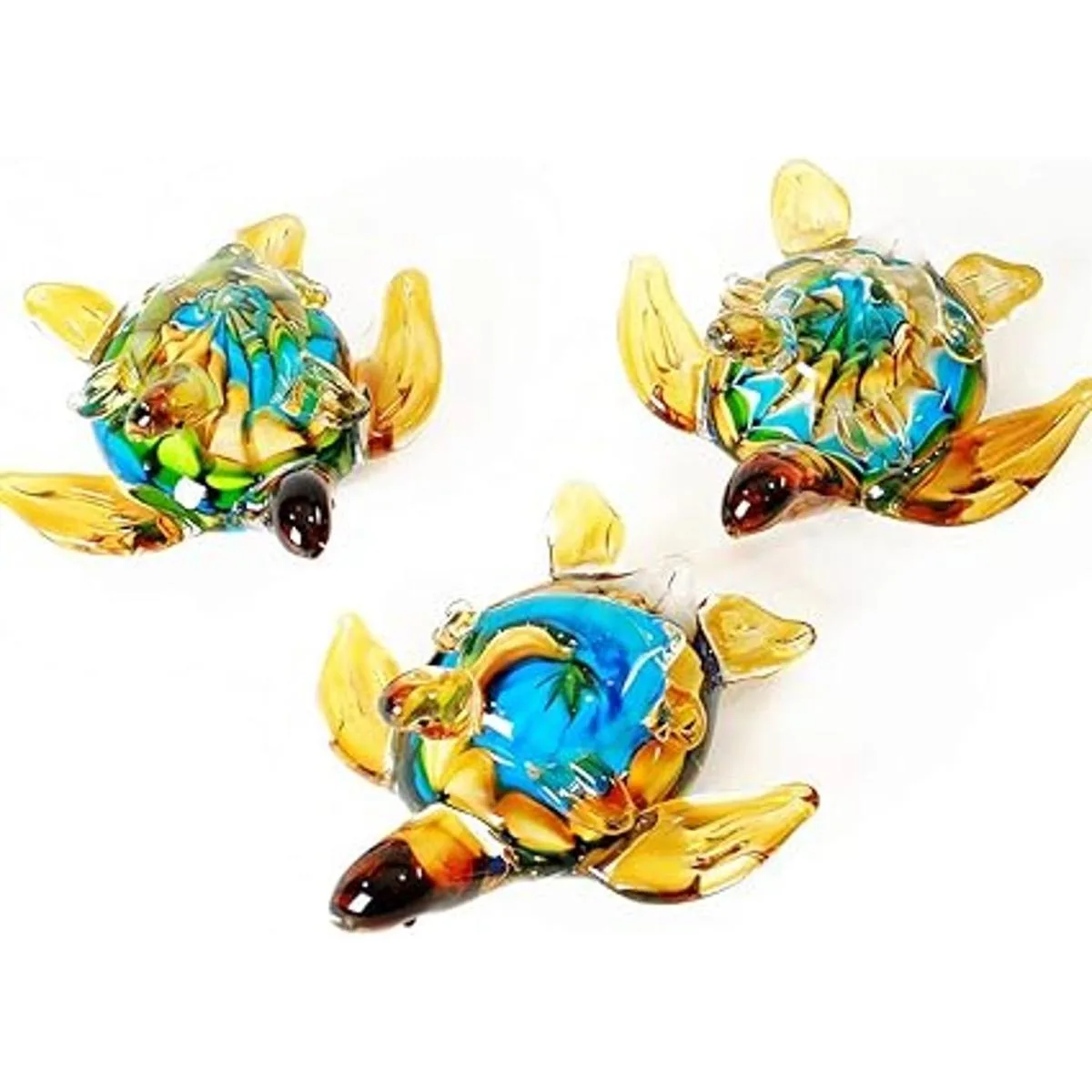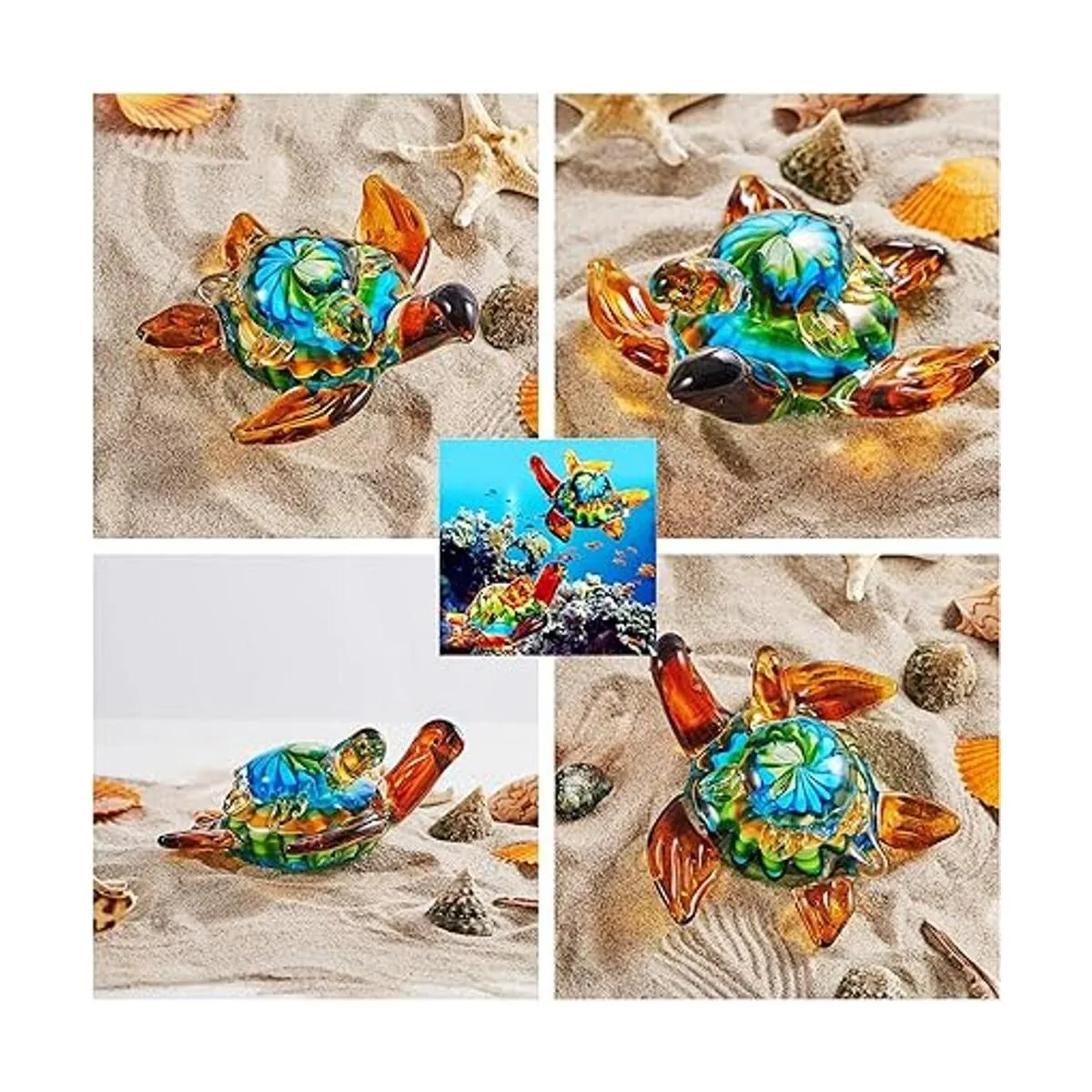 Figura de tortuga de mar de vidrio soplado a mano, adorno de animales marinos para decoración del hogar, colección de animales marinos para regalo de cumpleaños, escultura de tortuga de vidrio