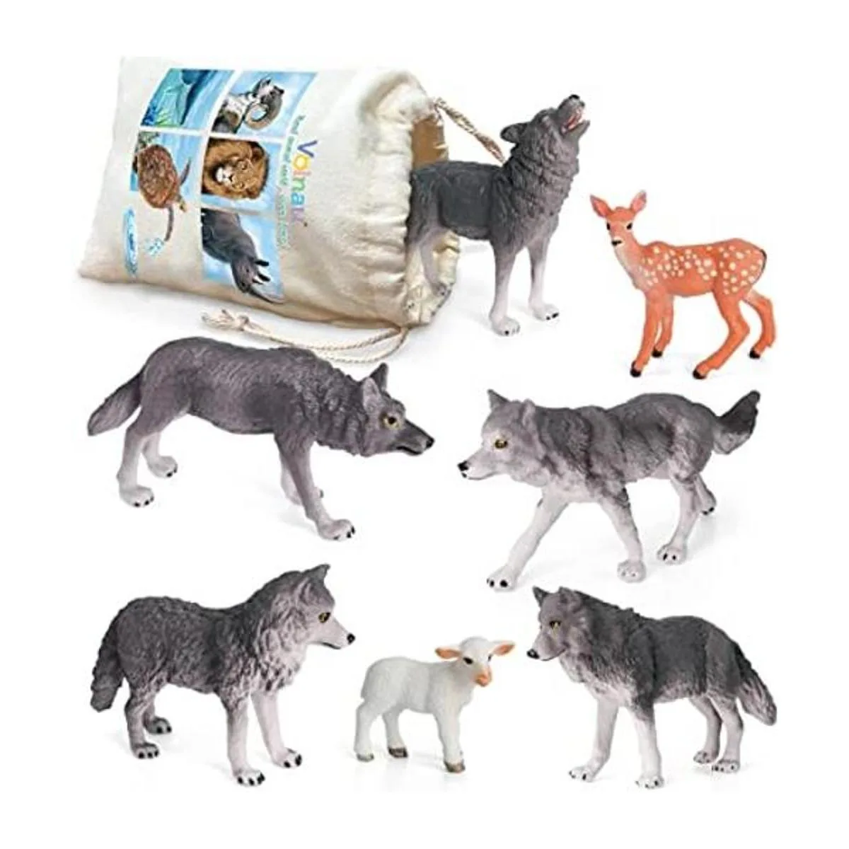 Figuras de animales de lobo VOLNAU 7 piezas de figuras de zoológico para niños pequeños, decoración de Navidad, regalo educativo de preescolar, juego de safari de bosque de ovejas selva