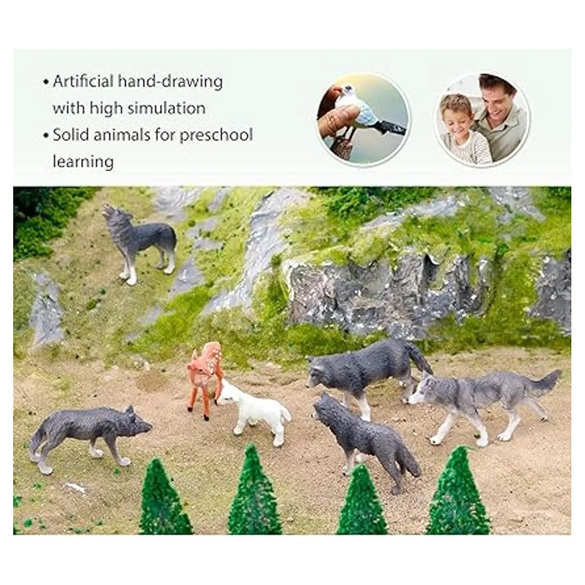 Animales realistas: cada figura de animal es como una real en la naturaleza. Fueron pintados manualmente por pintores profesionales, cada uno de ellos es único y diferente de los demás, son realistas y vienen con detalles perfectos. El color nunca se decolora, lo suficientemente resistente como para durar años.