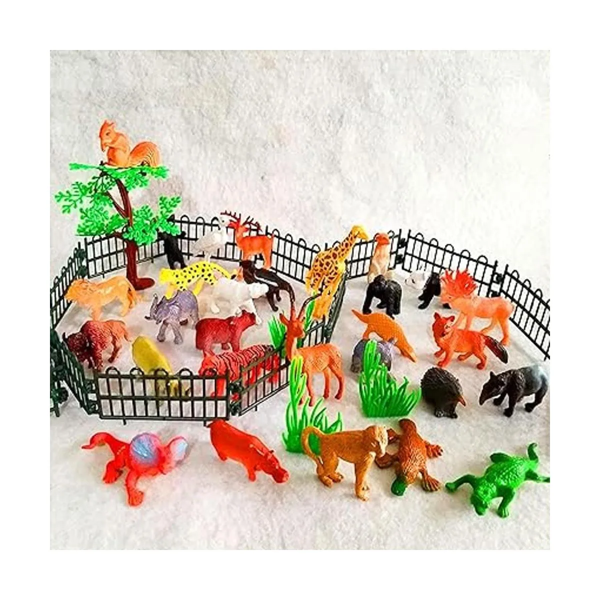 Juguetes de animales pequeños: paquete de 53 figuras de animales de plástico, incluyendo 32 animales de la selva sin repetidos, 16 vallas, 4 hierba y 1 árbol. Las figuras de animales miden aproximadamente 2.2 pulgadas.