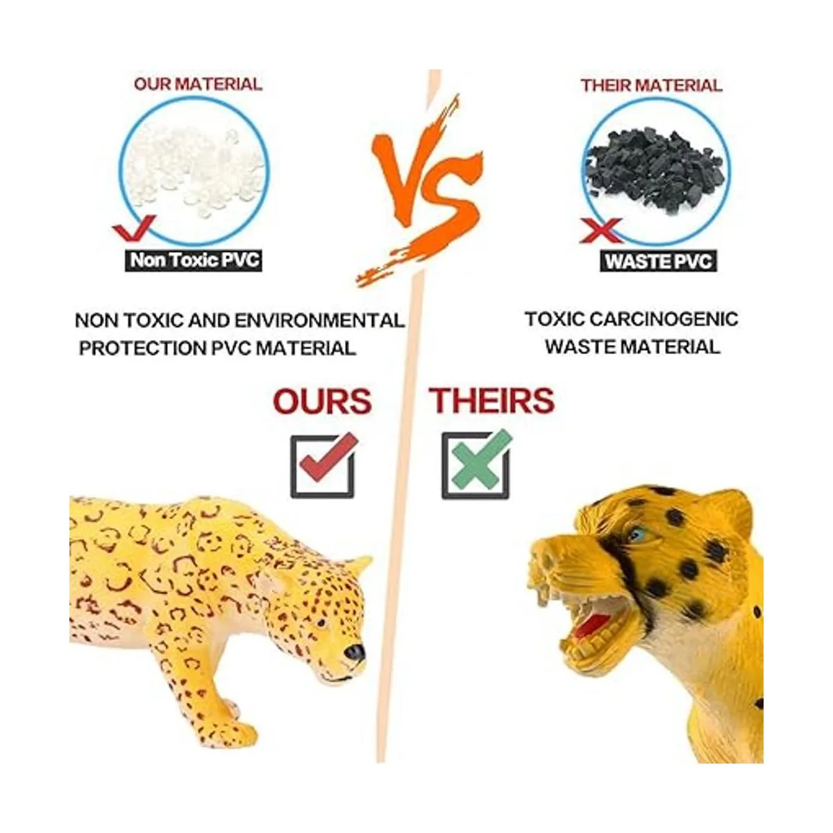 Juguete educativo de aprendizaje: también son los grandes accesorios de juego de simulación, mejorando el vocabulario de animales, habilidades lingísticas, pensamiento creativo y aprendizaje cognitivo activo a través del juego imaginativo. Los animales realistas del zoológico detallados son fáciles de distinguir para los niños, es el buen recurso de aprendizaje. También los juguetes de animales también pueden alejar a tus hijos de la electrónica que puede proteger su vista.