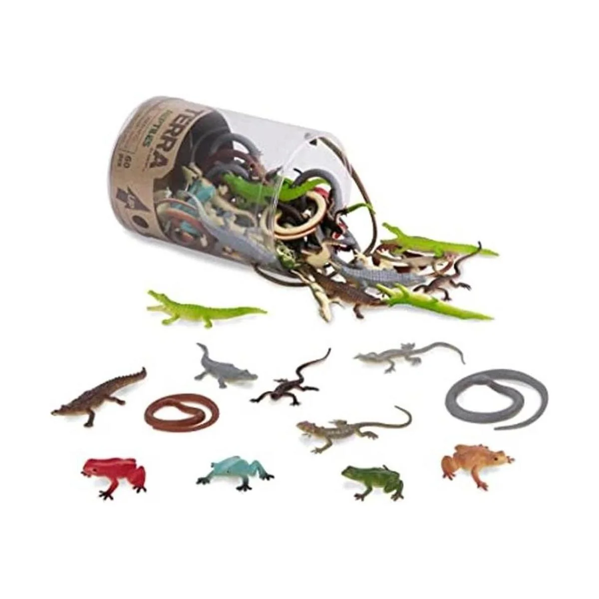 Incluye: 20 ranas, 15 lagartos, 15 cocodrilos y cocodrilos, y 10 serpientes