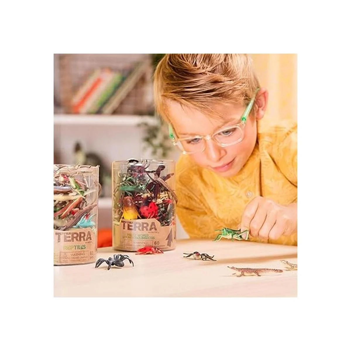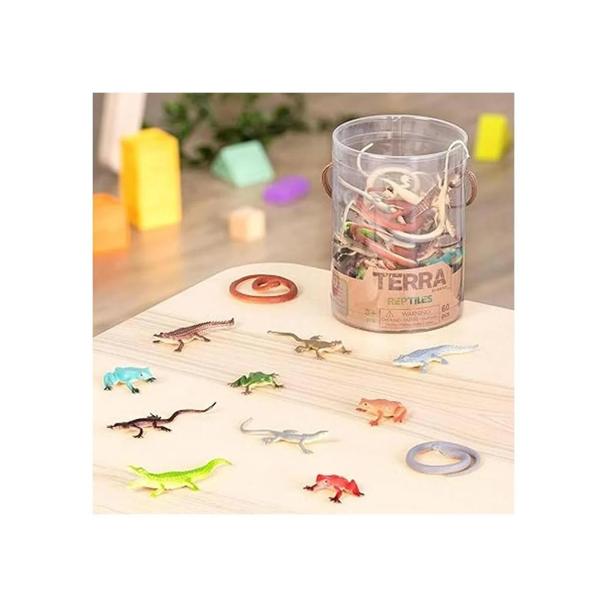 12 reptiles en miniatura diferentes en un tubo, 60 divertidos juguetes de animales en total