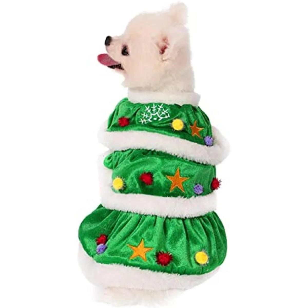 Filhome Disfraz de árbol de Navidad para perro, gato, vestido de Navidad de invierno, abrigo de forro polar para cachorros, ropa de Navidad