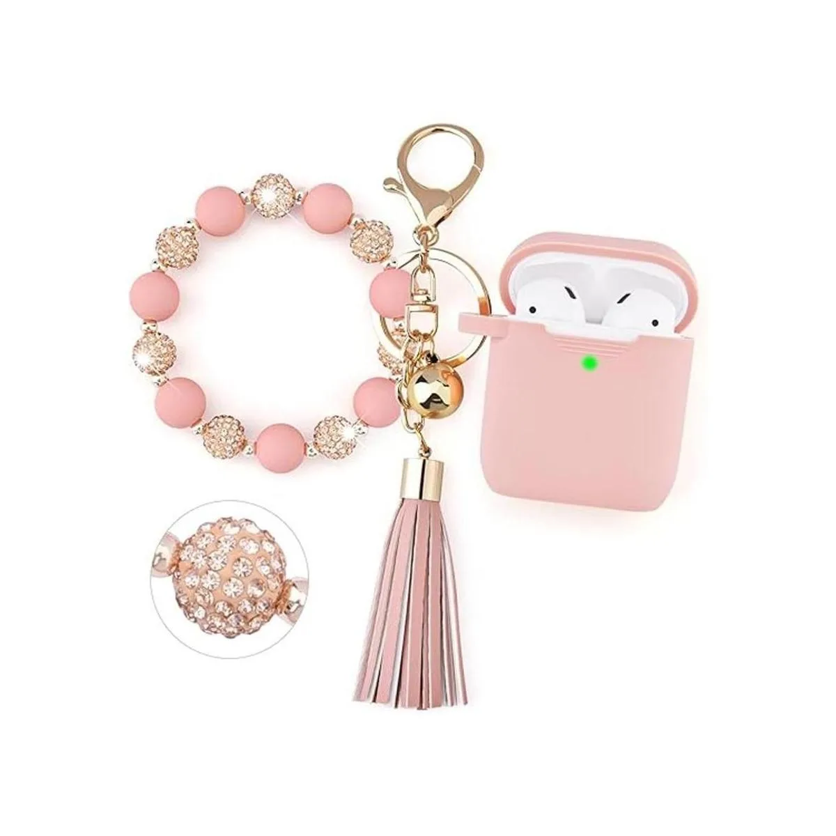 Filoto Funda para Airpods, bonita funda para Apple Airpod de 2 generación para mujeres y niñas, funda protectora de silicona para Airpods 21 con llavero de pulsera brillante rosa