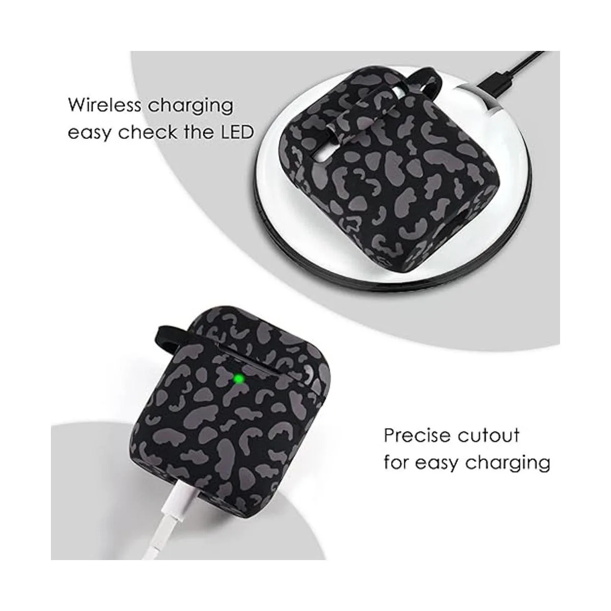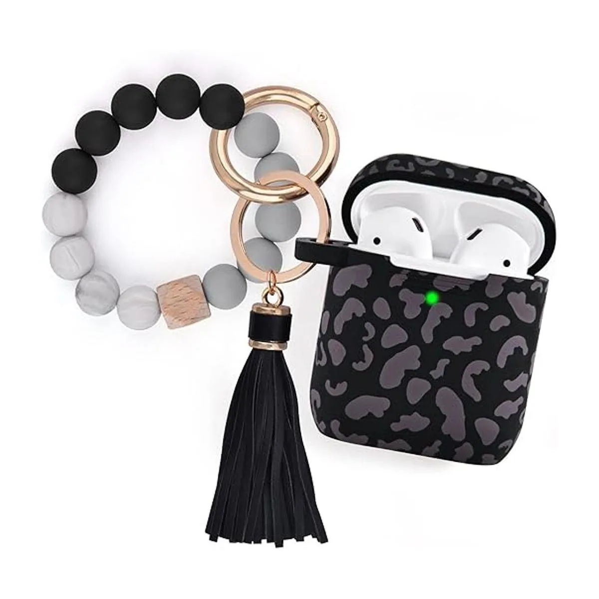 Filoto Funda para Airpods de Apple Airpod 1 y 2 para mujeres y niñas, funda protectora de silicona con pulsera llavero leopardo negro