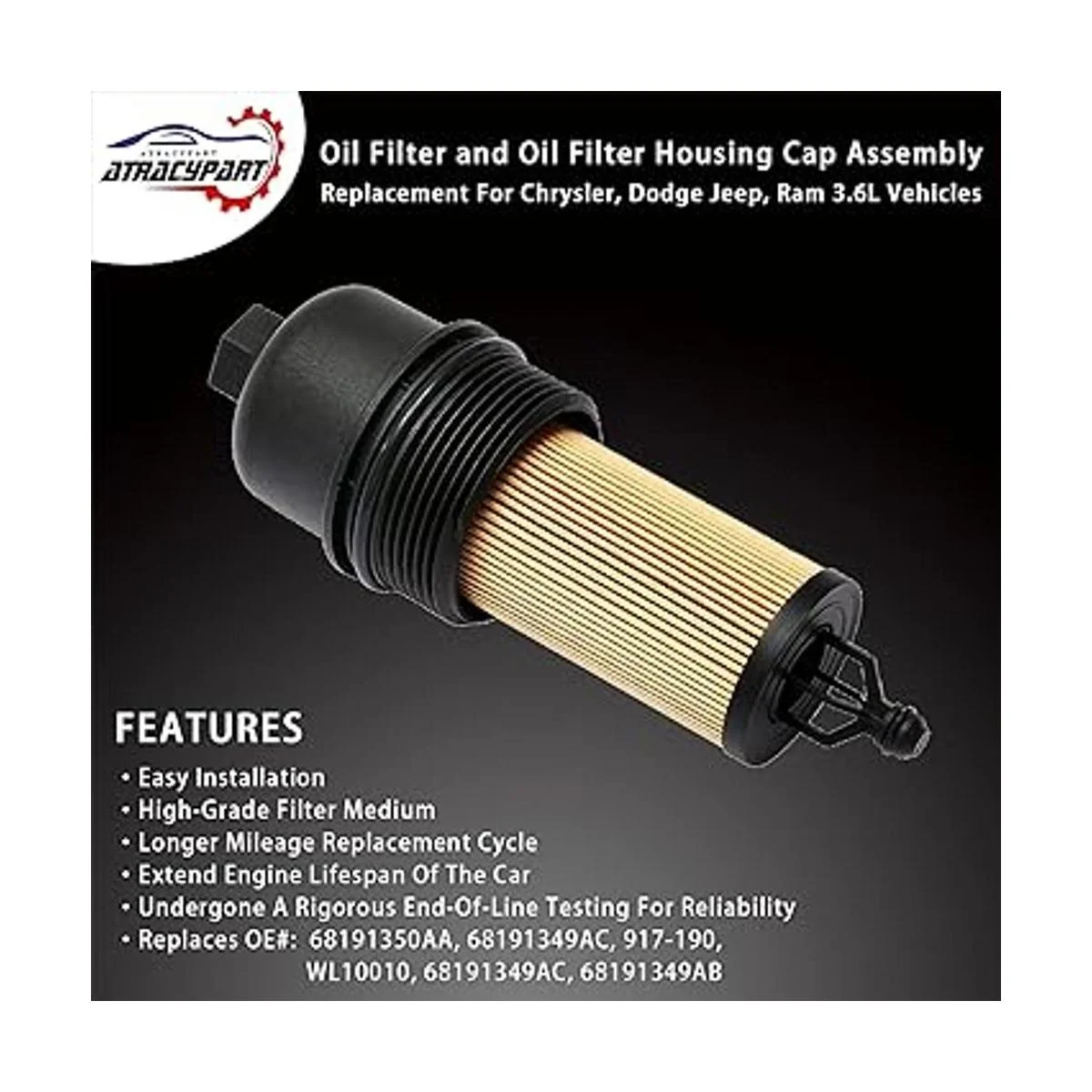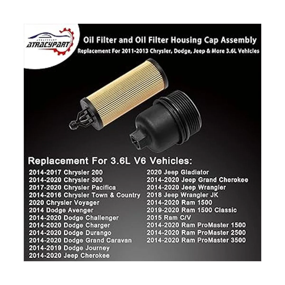 Filtro de aceite y tapa de filtro de aceite Repuesto para vehículos Chrysler, Dodge, Ram 3.6L 20142020, reemplaza 68191350AA, 917190, 68191349AC