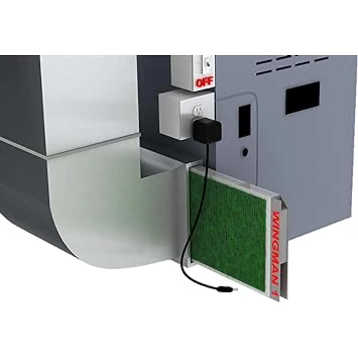 Filtro de aire electrónico Wingman1 que incluye el suministro de almohadillas de repuesto por un año se instala en casa simplemente reemplaza tu filtro de aire de horno de CA actual y enchufarlo.
