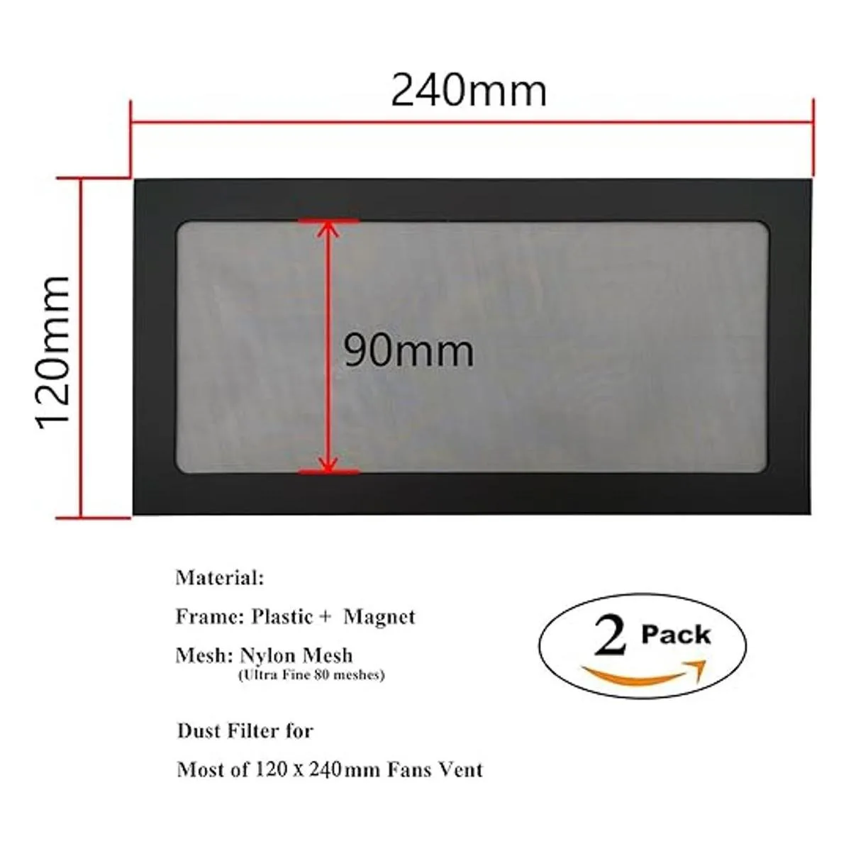 Filtro de polvo para ventilador de computadora de escritorio de 4.724 x 9.449 in con imán, malla de nailon ultrafina, flujo de aire suave actualizado, color negro, paquete de 2 unidades