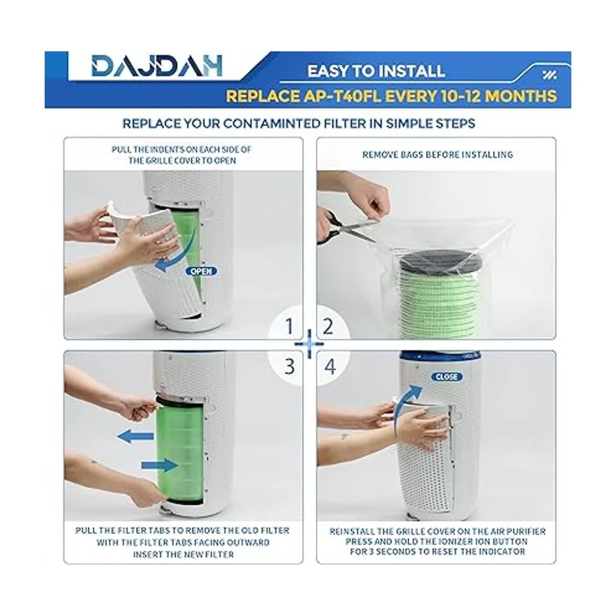 Fácil instalación y servicio de calidad Para mantener un rendimiento óptimo de tu purificador de aire, reemplaza el filtro apt40fl cada 1012 meses, sin instalación de herramientas. Ponte en contacto con nosotros si tienes preguntas sobre el filtro de repuesto, DAJDAH será de todo corazón en tu servicio de 7 x 24 horas.