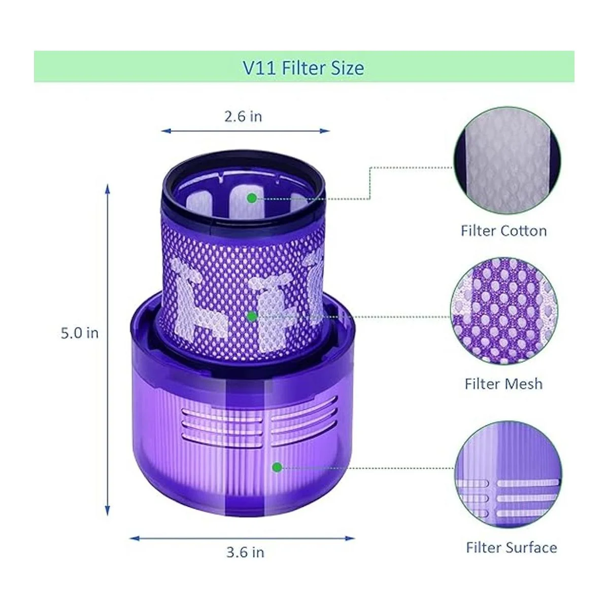 Filtro de repuesto V11, filtro Laukowind para aspiradora Dyson V11 Torque Drive y Dyson V11 Animal V15 Detect Wireless Vac, comparar el número de pieza 97001302 paquete de 4