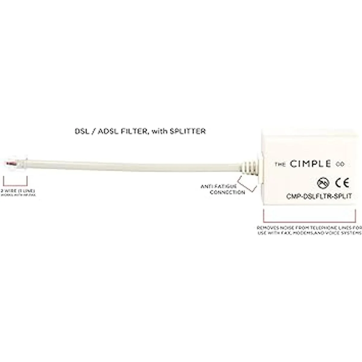 Filtro DSL de 2 cables, 1 línea, con divisor integrado, para eliminar ruido y otros problemas de líneas telefónicas relacionadas con DSL, paquete de 3