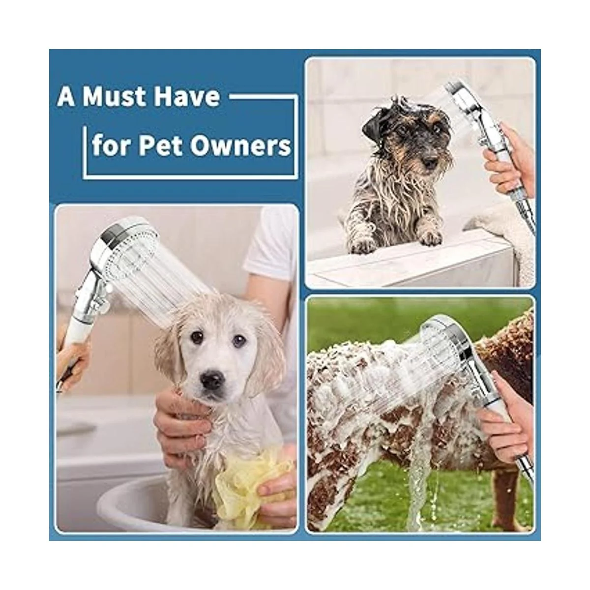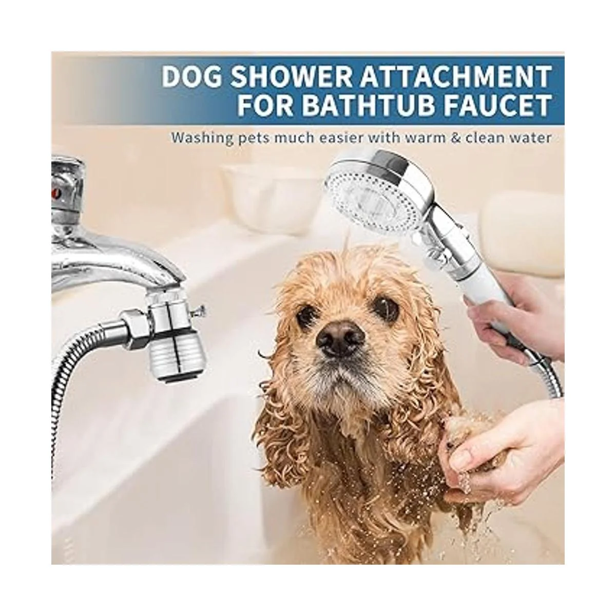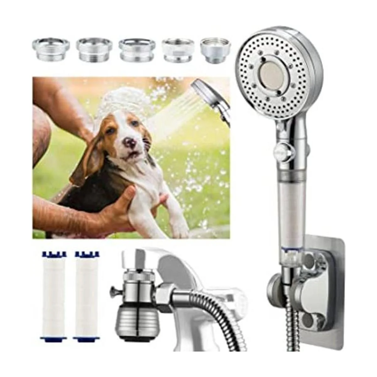 Filtro para el grifo de la regadera del perro, accesorio para el lavabo, de mano de encendidoapagado con desviador de reinicio automático 5 adaptadores, enjuague de mascotas, lavado del cabello y baño de bebé, soporte ajustable de manguera de extensión de acero inoxidable