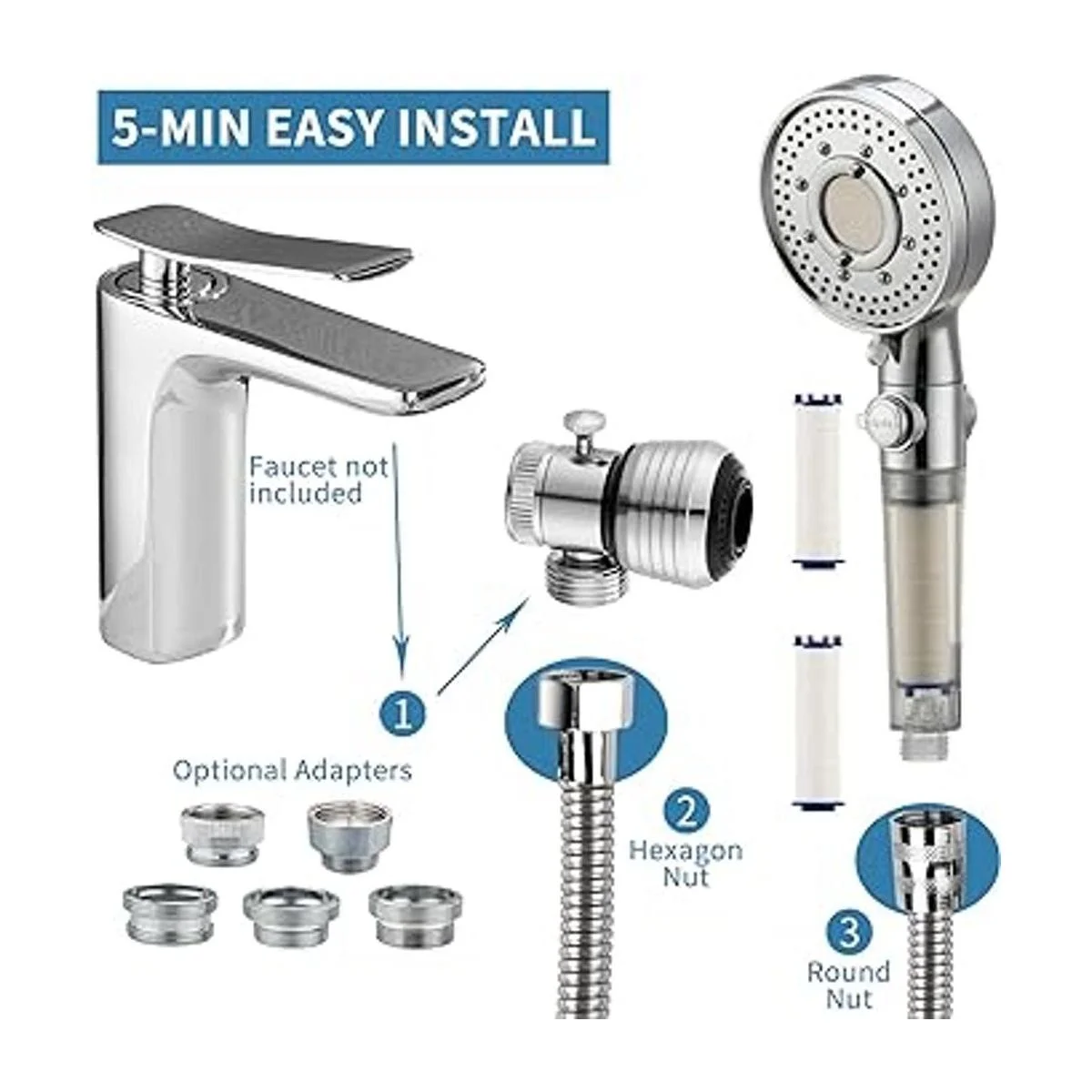 Filtro de ducha de agua suave: filtro de algodón reemplazable 3 piezas en el interior del cabezal de ducha ofrece agua limpia para proteger la delicada piel de tu bebé y el hermoso cabello de tus encantadores compañeros. Equipado con interruptor de palanca de encendido/apagado y regulador de presión de agua, puedes elegir utilizar un spray suave o enjuague de alta presión, 3 ajustes opcionales y modo de de pulverización.