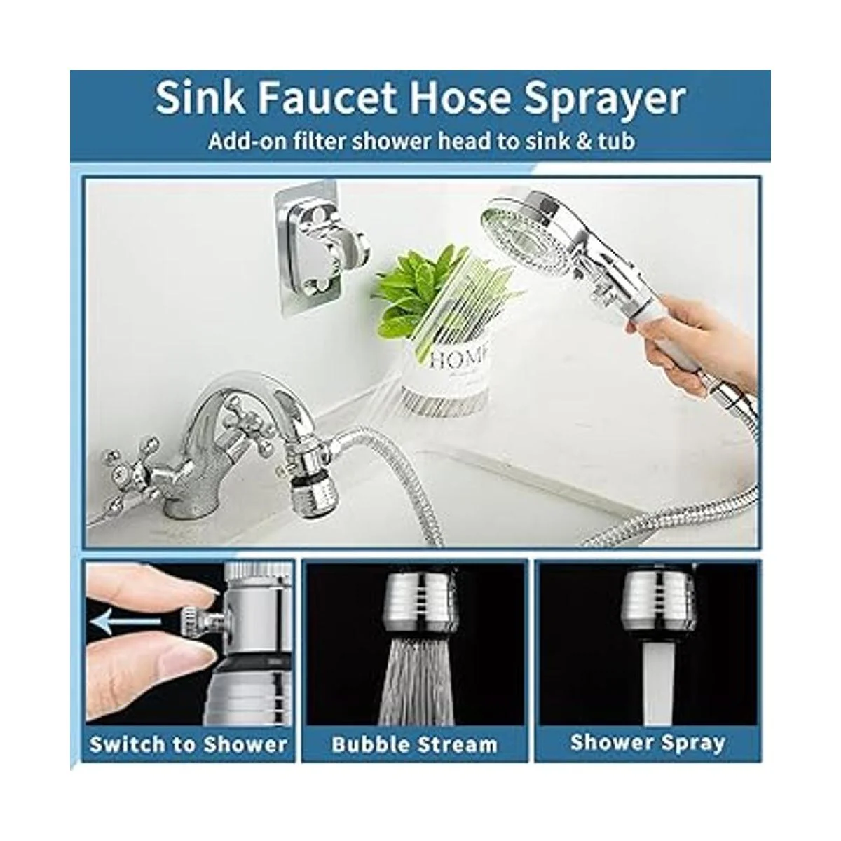 Pulverizador de grifo para bebés y mascotas: baña a tu bebé o limpia a tus perros/cachorros/gatos en un fregadero de baño regular, fregadero de utilidad, bañera o bañera de jardín. Cabezal de ducha de mano con filtro con presión de agua ajustable que aporta duchas cómodas. Lava rápidamente las burbujas para salvar tu cuello y hombros. El agua de diseño exclusivo fluye automáticamente desde la boquilla desviadora en el grifo, no te preocupes por salpicaduras en tu cara cada vez que empieces a usar