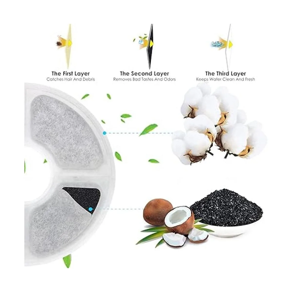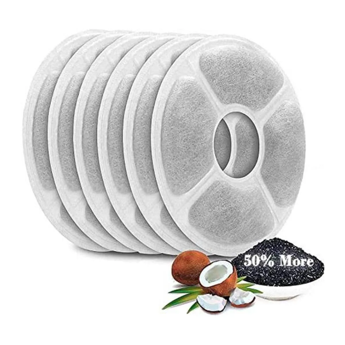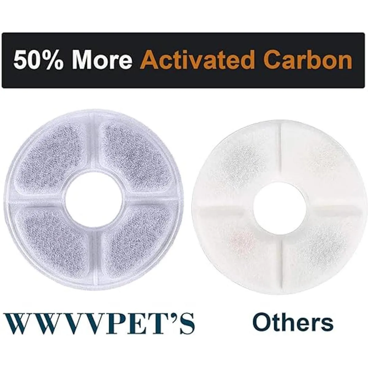 50 más de filtros de carbón activado: los filtros de la marca WWVVPET contienen un 50 más de carbón activado de cáscara de coco que la mayoría de los filtros del mercado para una filtración mejor y duradera que puede ayudar a mantener a tus mascotas saludables. Tamaño: 5 x 5 x 0.4 pulgadas, el diámetro del círculo hueco es de aproximadamente 1.4 pulgadas, mide el tamaño de tu fuente antes de comprar