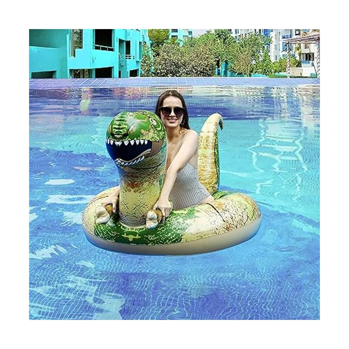 Flotadores de piscina de dinosaurio: este flotador inflable para piscina es ampliamente utilizado en la fiesta de piscina, playa, viaje a flotar en el río, viajes, lugares de entretenimiento. Disfruta del sol y el verano fresco con el dinosaurio