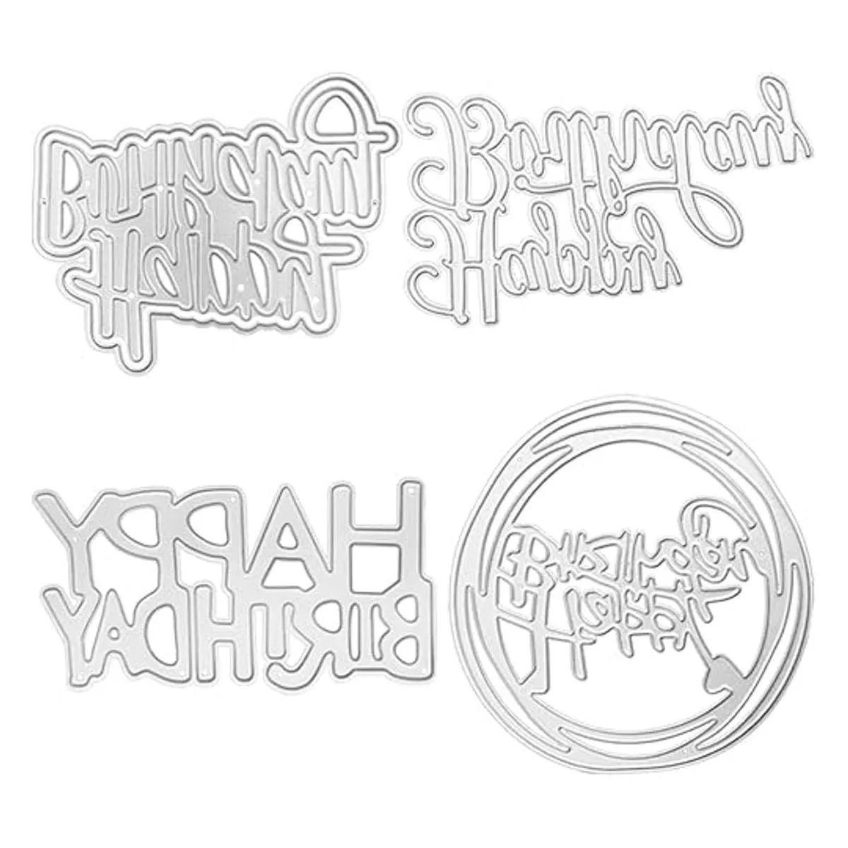 FineGood Juego de 4 troqueles para hacer tarjetas, troqueles de corte de feliz cumpleaños, suministros para hacer tarjetas, troqueles para hacer tarjetas, plantillas para álbumes de recortes