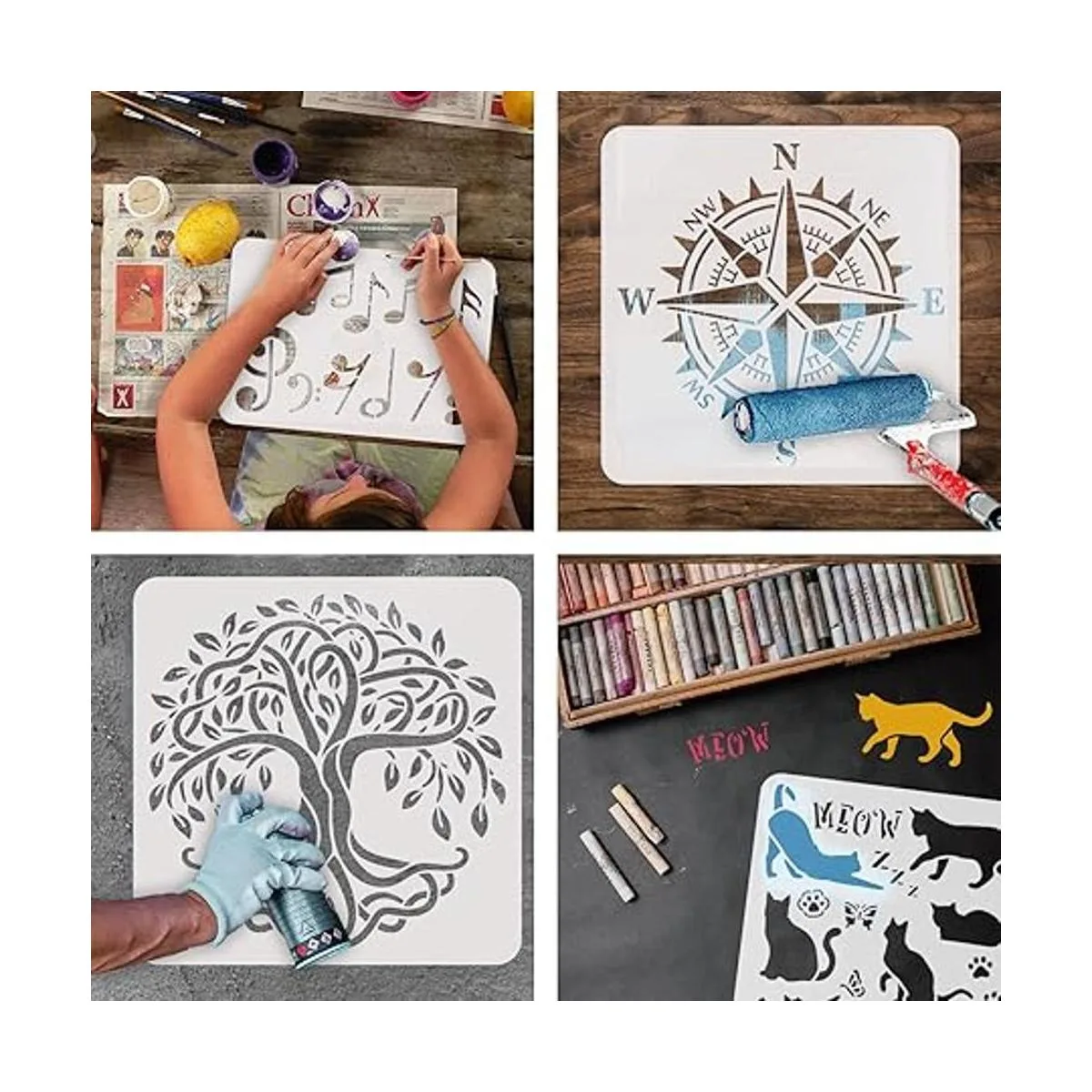 Amplia aplicación: las plantillas de pintura se pueden utilizar en la mayoría de objetos planos para creaciones de bricolaje, como carteles de madera, paredes, azulejos, suelos, lona, tela, muebles, ventanas, techo, puerta, armarios, manualidades de pintura, carteles. Grandes piezas de arte como decoración del hogar.