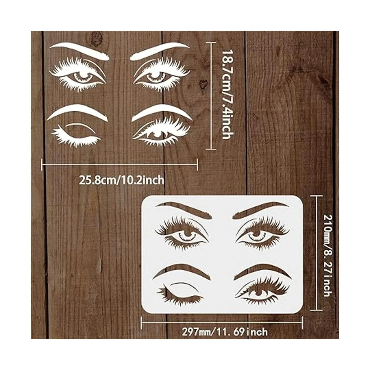 FINGERINSPIRE Plantillas de ojos para pintar, plantillas de ojos grandes y hermosos de 11.7 x 8.3 pulgadas, dos pares de ojos y cejas, plantilla de dibujo reutilizable para mujer, decoración artística para letreros de madera, lienzo