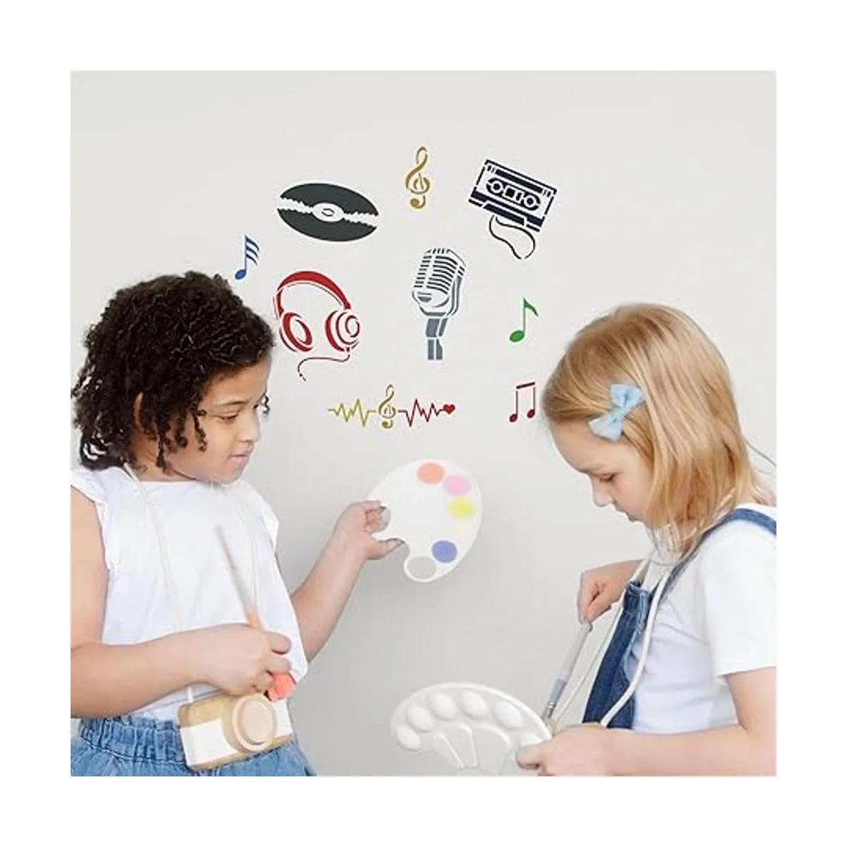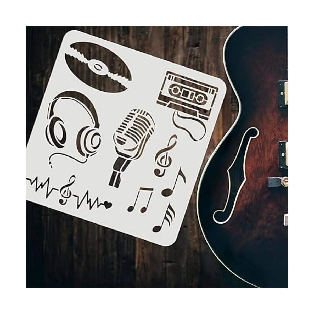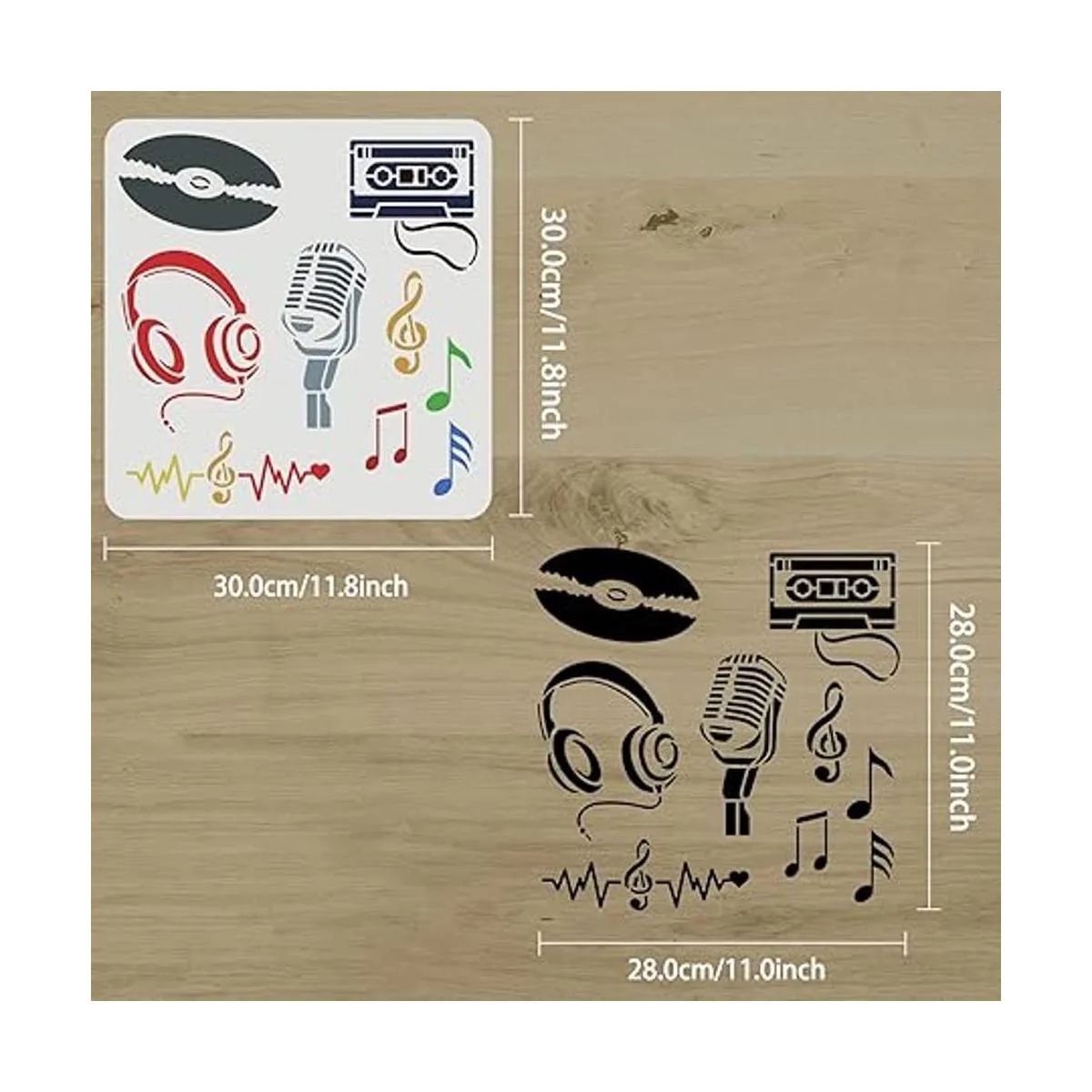FINGERINSPIRE Plantillas musicales de 11.8 x 11.8 pulgadas, plantillas de plástico para notas musicales, cintas, CD, plantillas de patrón de auriculares, plantillas reutilizables con temática musical, plantillas de bricolaje para conciertos, decoración de aula