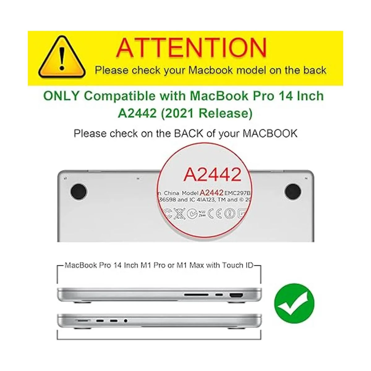 Específicamente diseñado para MacBook Pro de 14 pulgadas 2021 2022 versión A2442 M1 Pro / M1 Max con pantalla Liquid Retina XDR y Touch ID. No compatible con otros modelos de portátiles.
