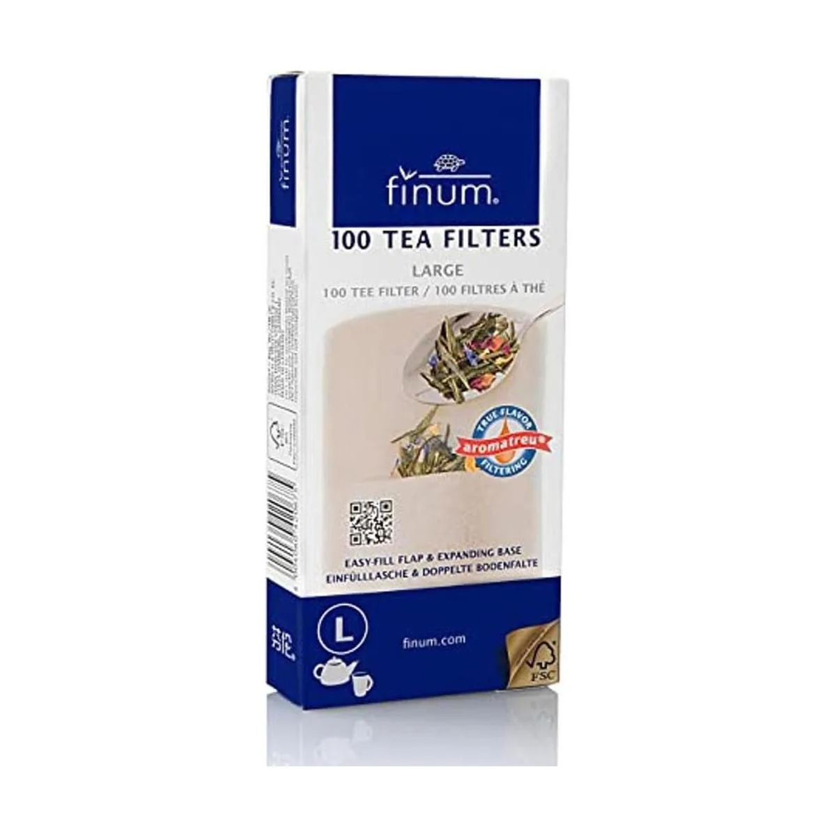 Los filtros de té desechables Finum de fibras naturales certificadas FSC, vienen en varios tamaños, perfectos para cualquier taza o olla grande.