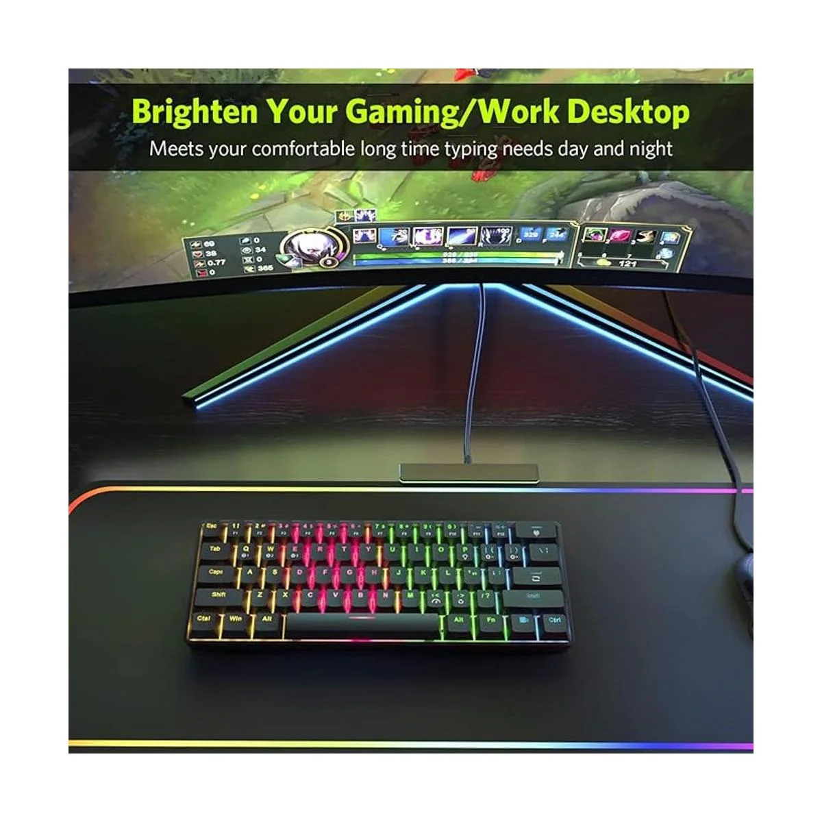 Fiodio Teclado mecánico inalámbrico y con cable RGB de 61 teclas con interruptores azules, sonido de clic audible, arcoíris, portátil, compacto, mini teclado de oficina para Windows PC Gaming, FSG61